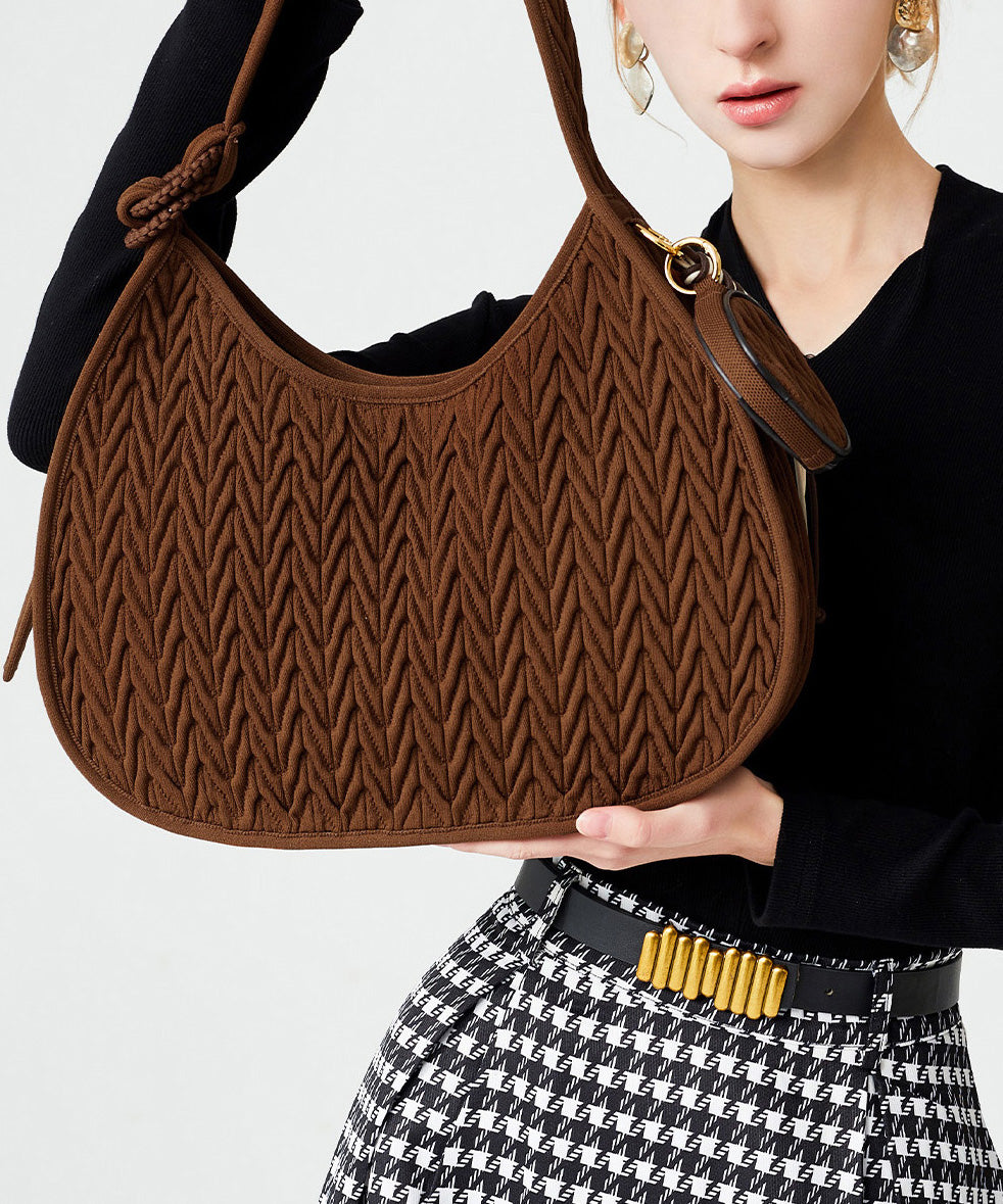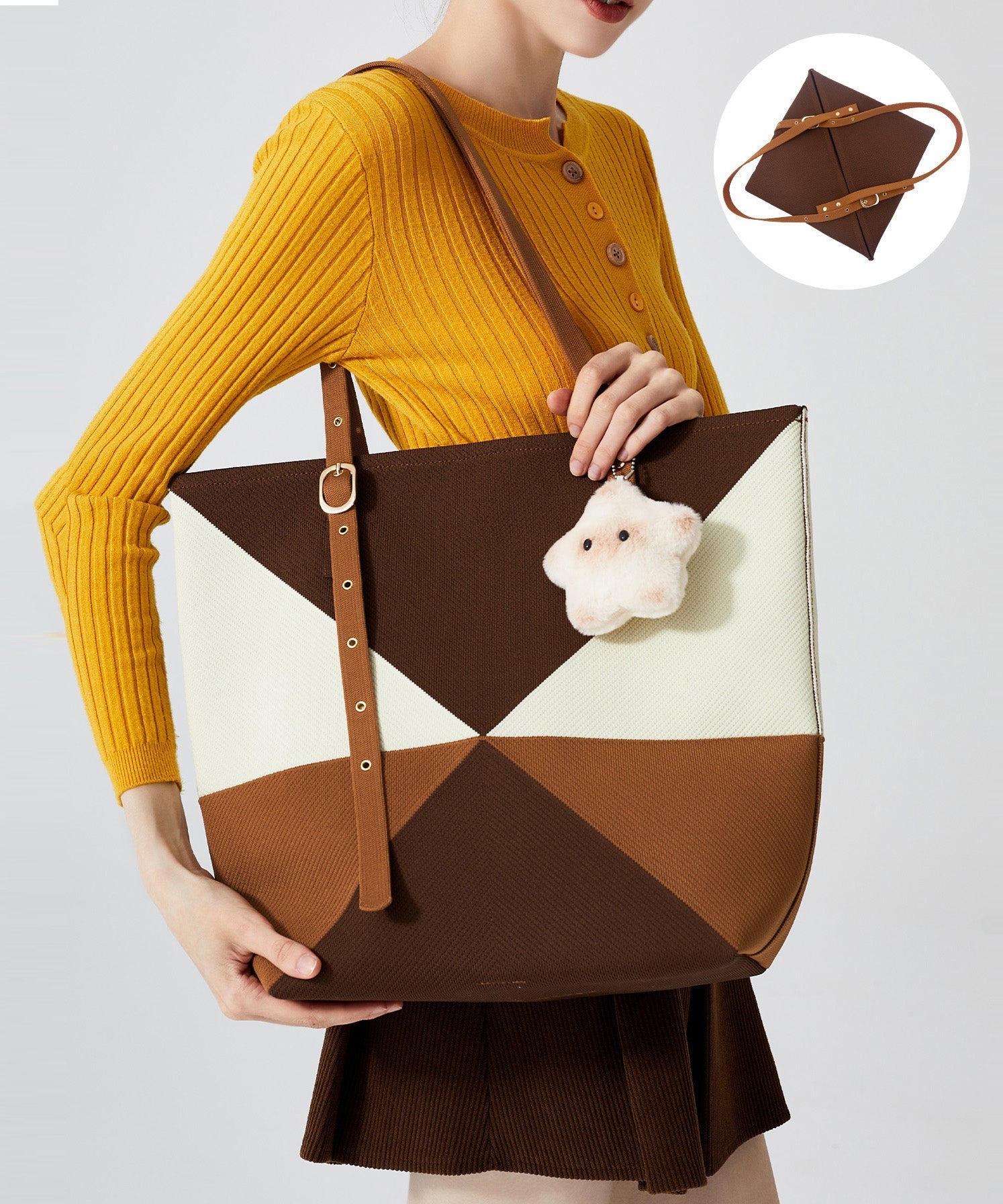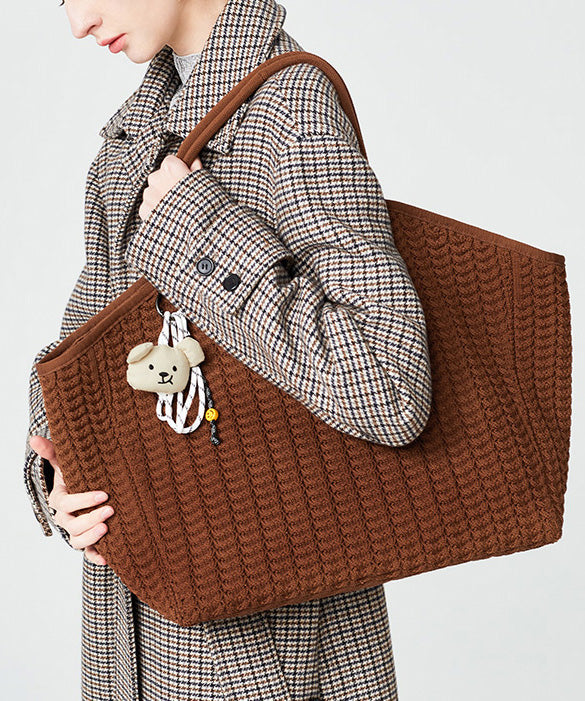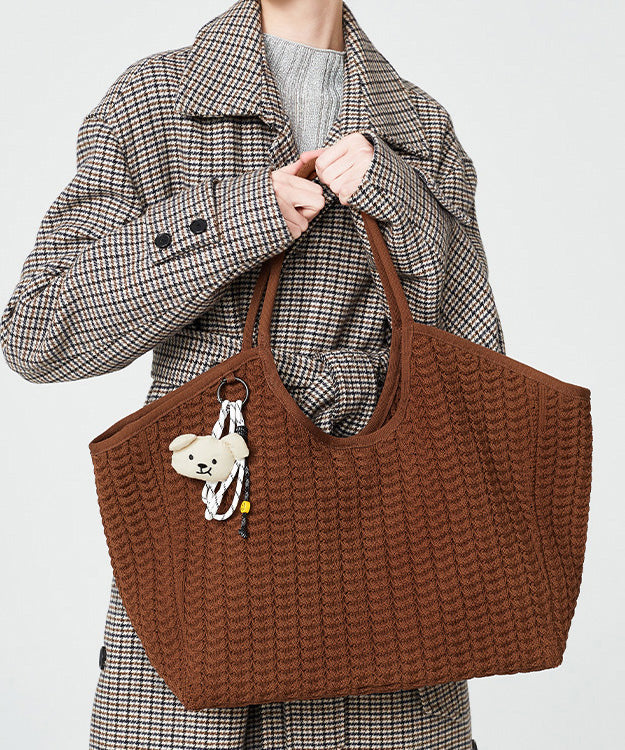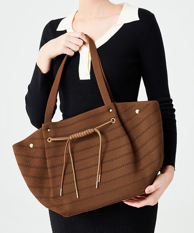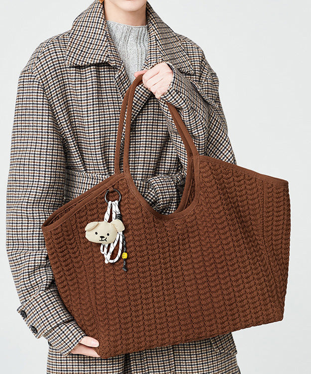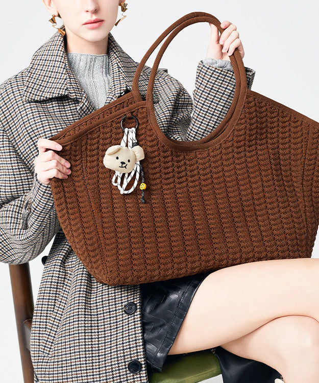 Classy Coffee Solid Durable Large Capacity Knit Tote Handbag