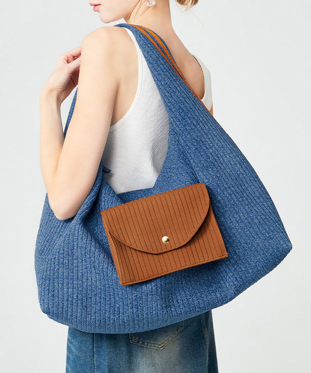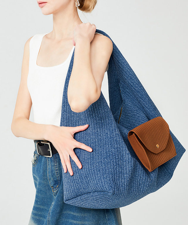 Classy Denim Blue Large Capacity Patchwork Pocket Cotton Shoulder Bags