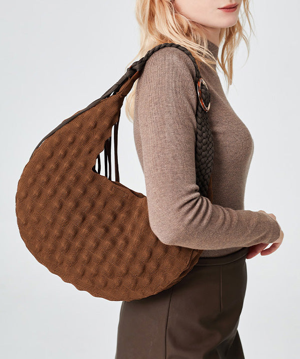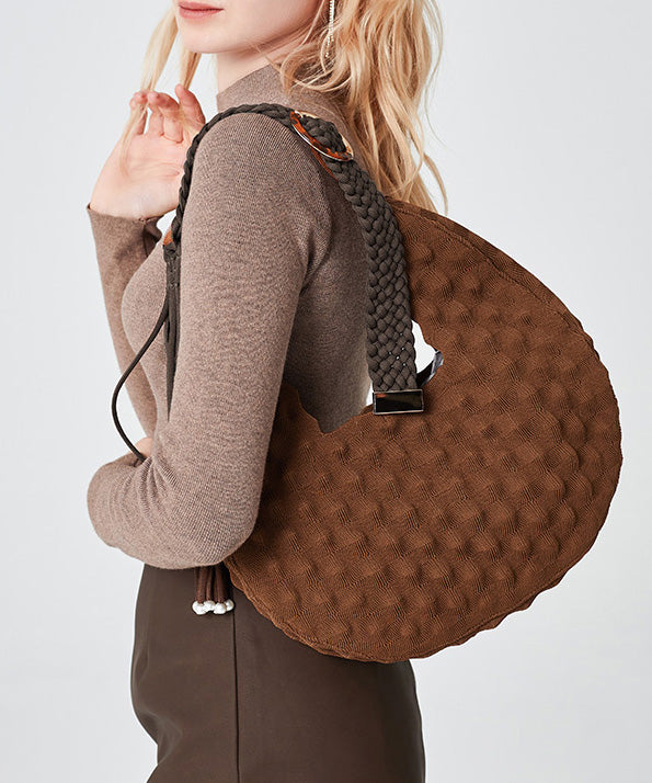 Elegant Chocolate Striped Solid Durable Cotton Hobo Bag