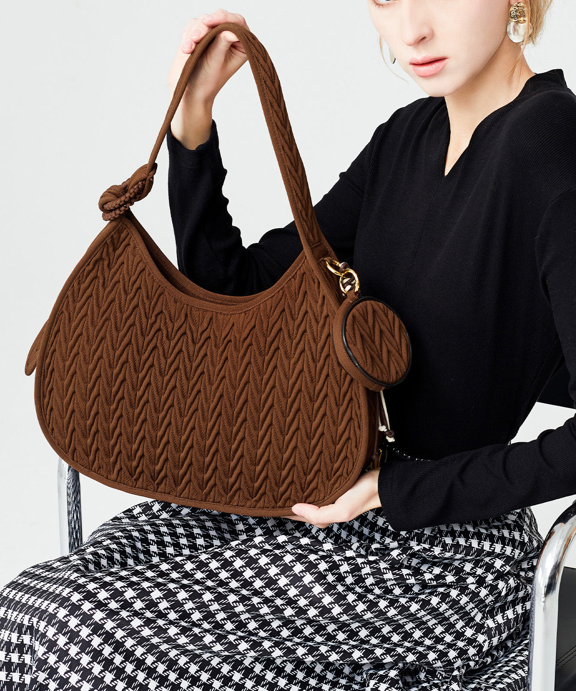 Women Brown Embossing Large Capacity Cotton Shoulder Bags