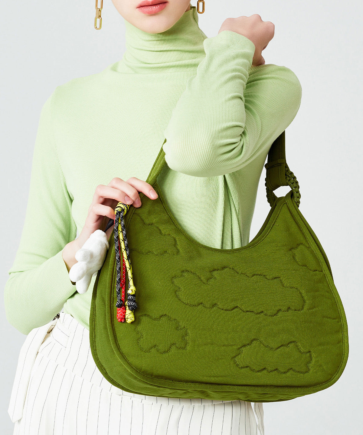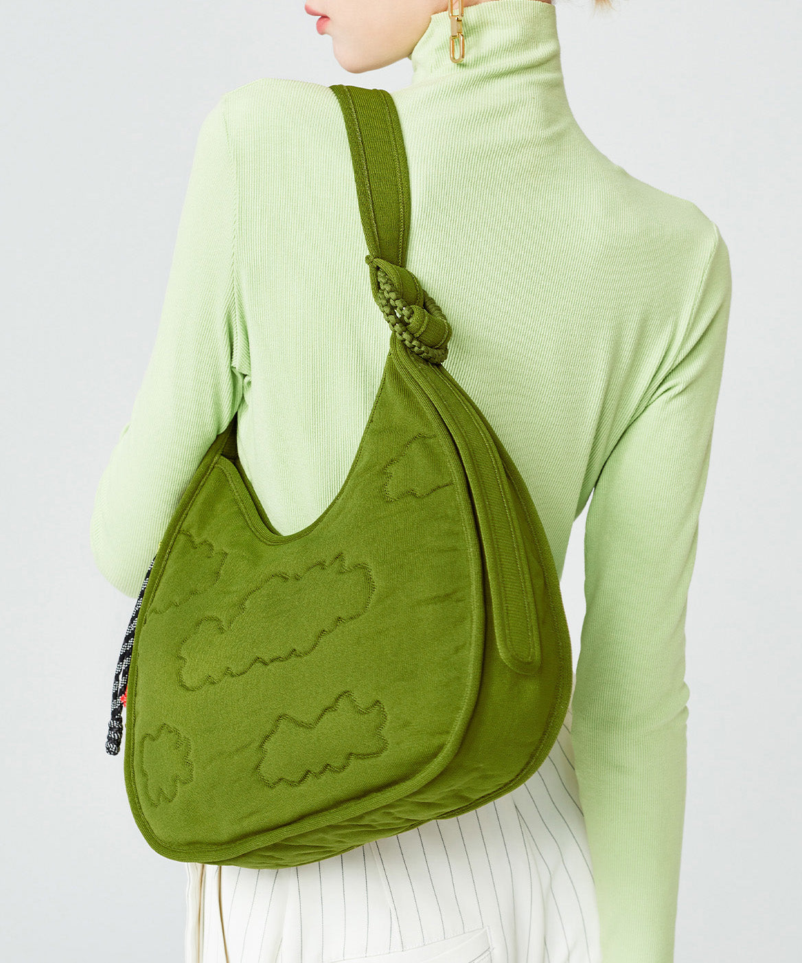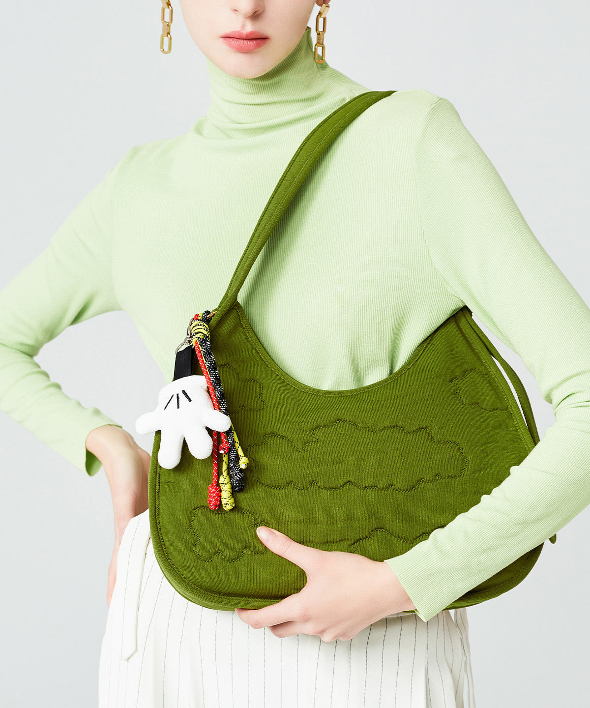 Classy Army Green Jacquard Tasseled Cotton Women Shoulder Bags