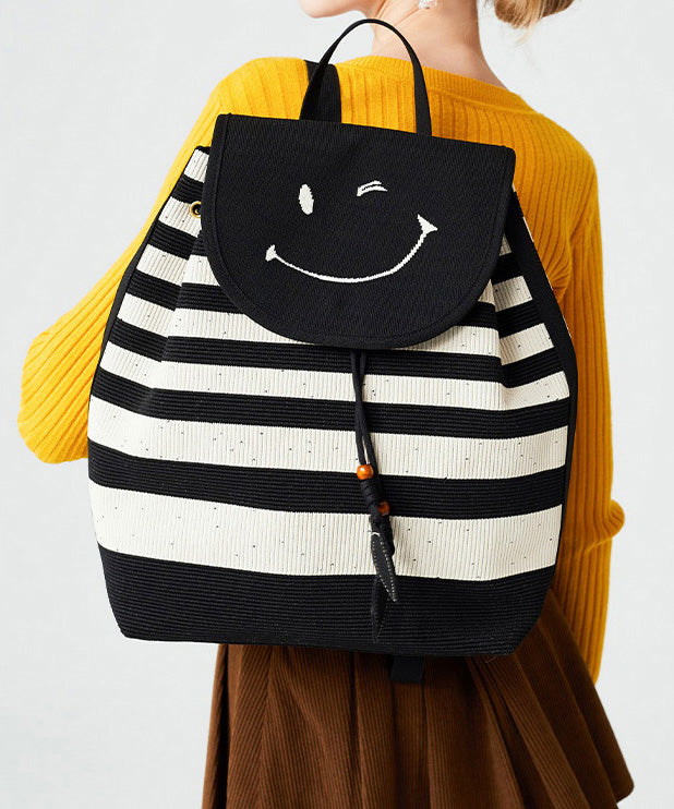 Stylish Black Striped Large Capacity Cotton Backpack Bag