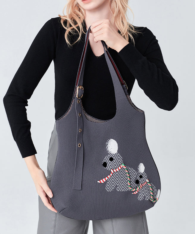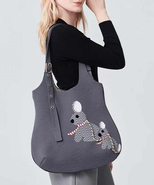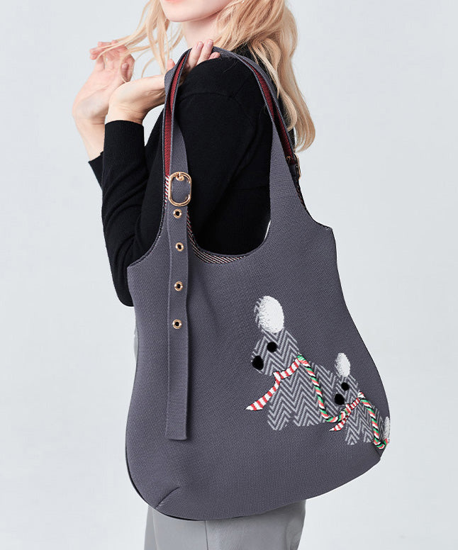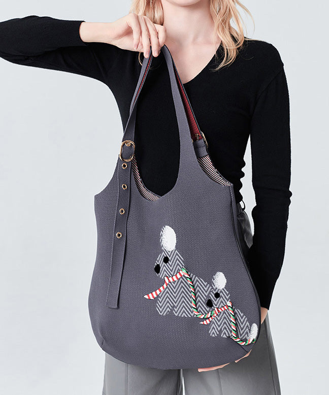 Stylish Grey Jacquard Solid Durable Cotton Shoulder Bags