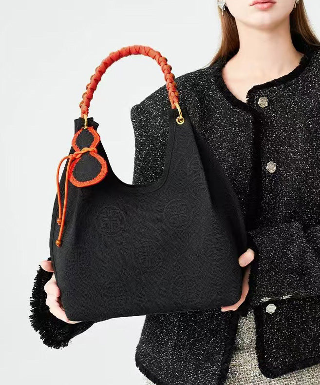 Art Black Jacquard Tasseled Cotton Women Handbag