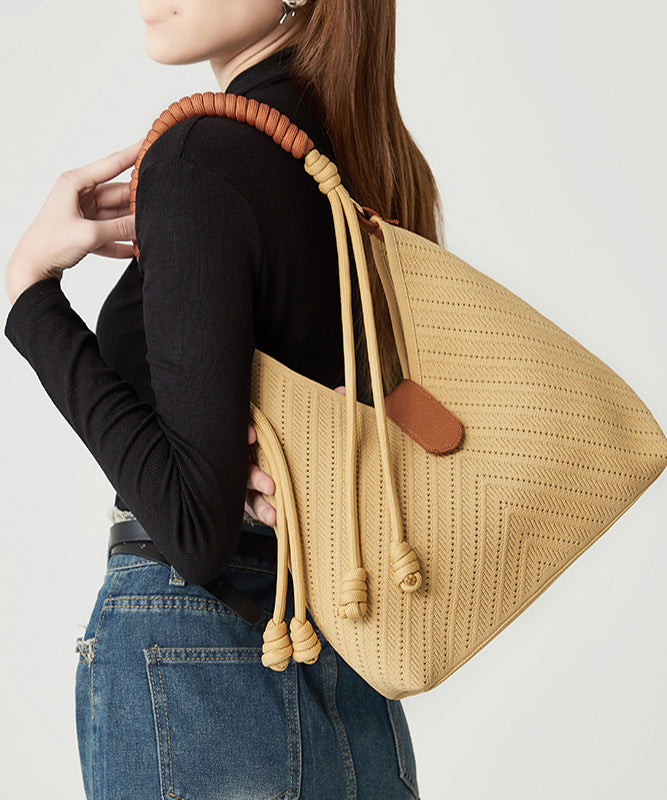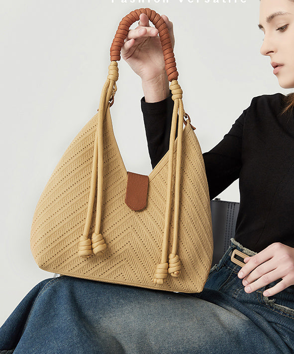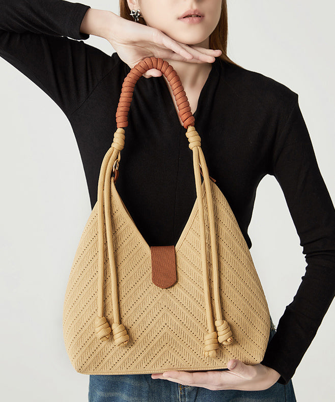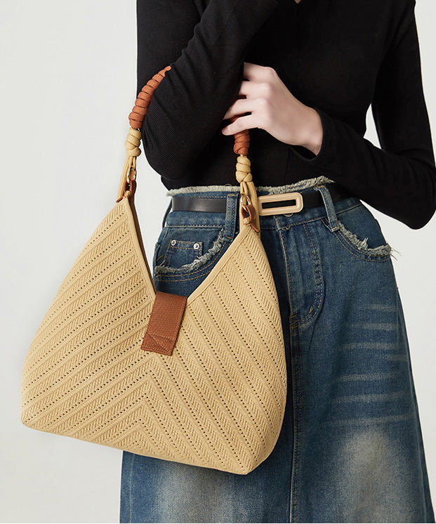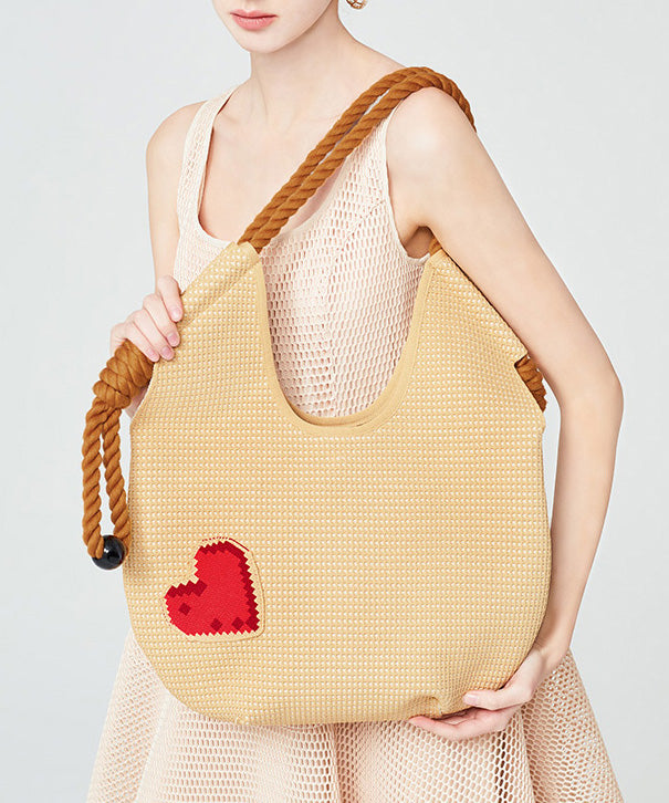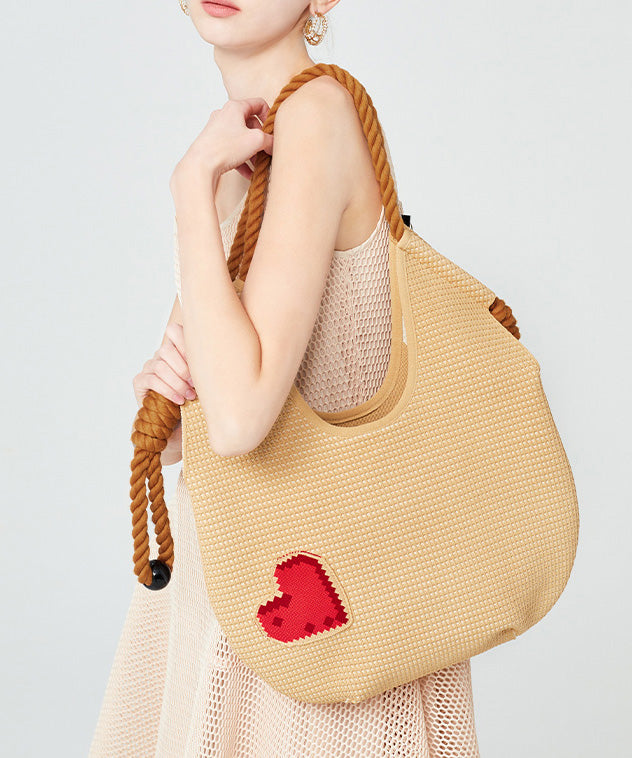 Fashion Beige Solid Durable Patchwork Love Woven Shoulder Bags