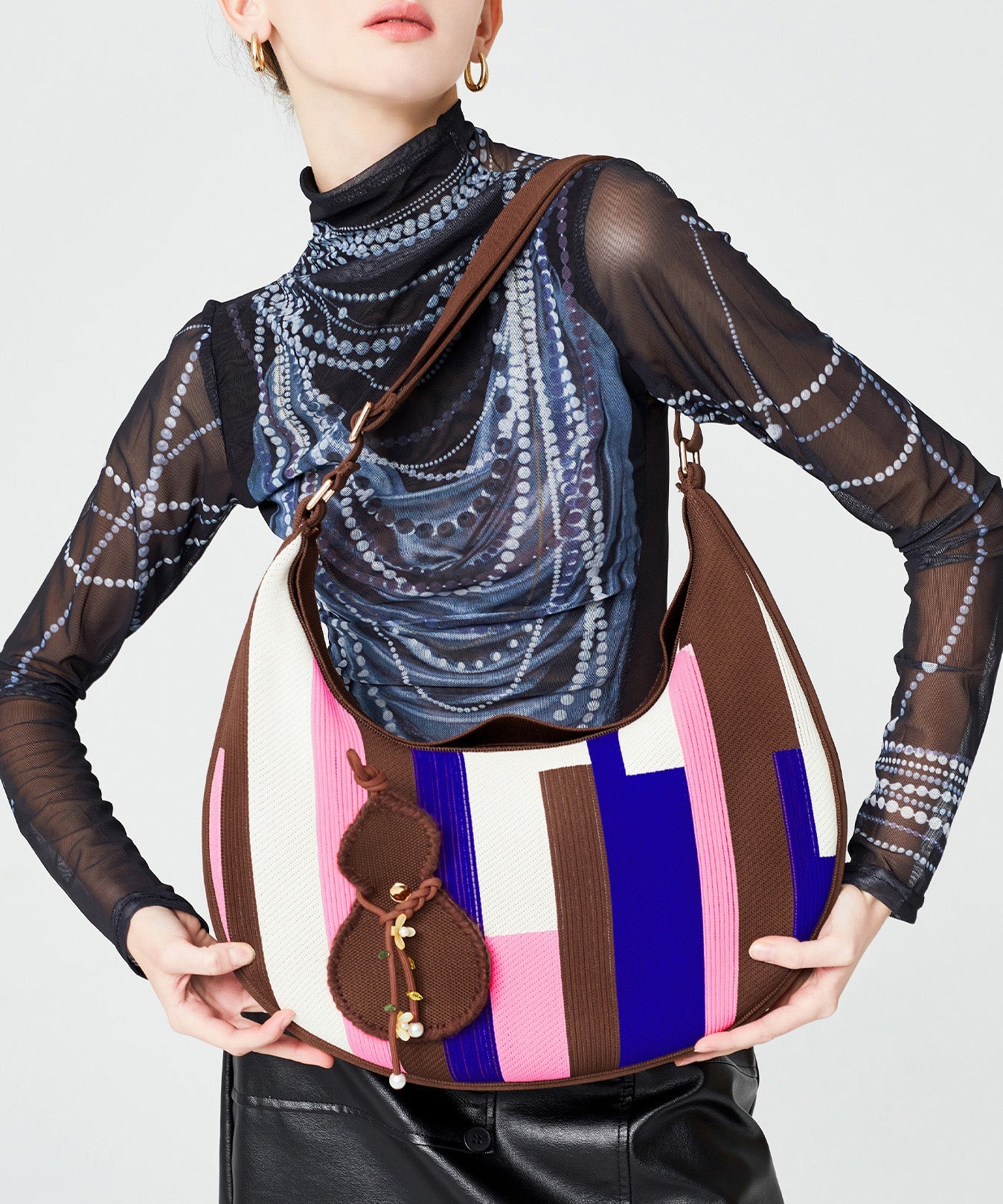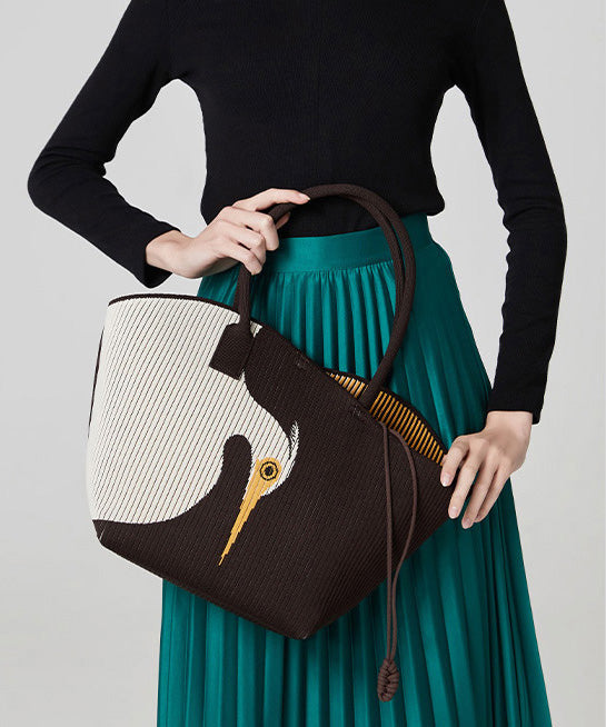Stylish Chocolate Asymmetrical Design Jacquard Cotton Shoulder Bags