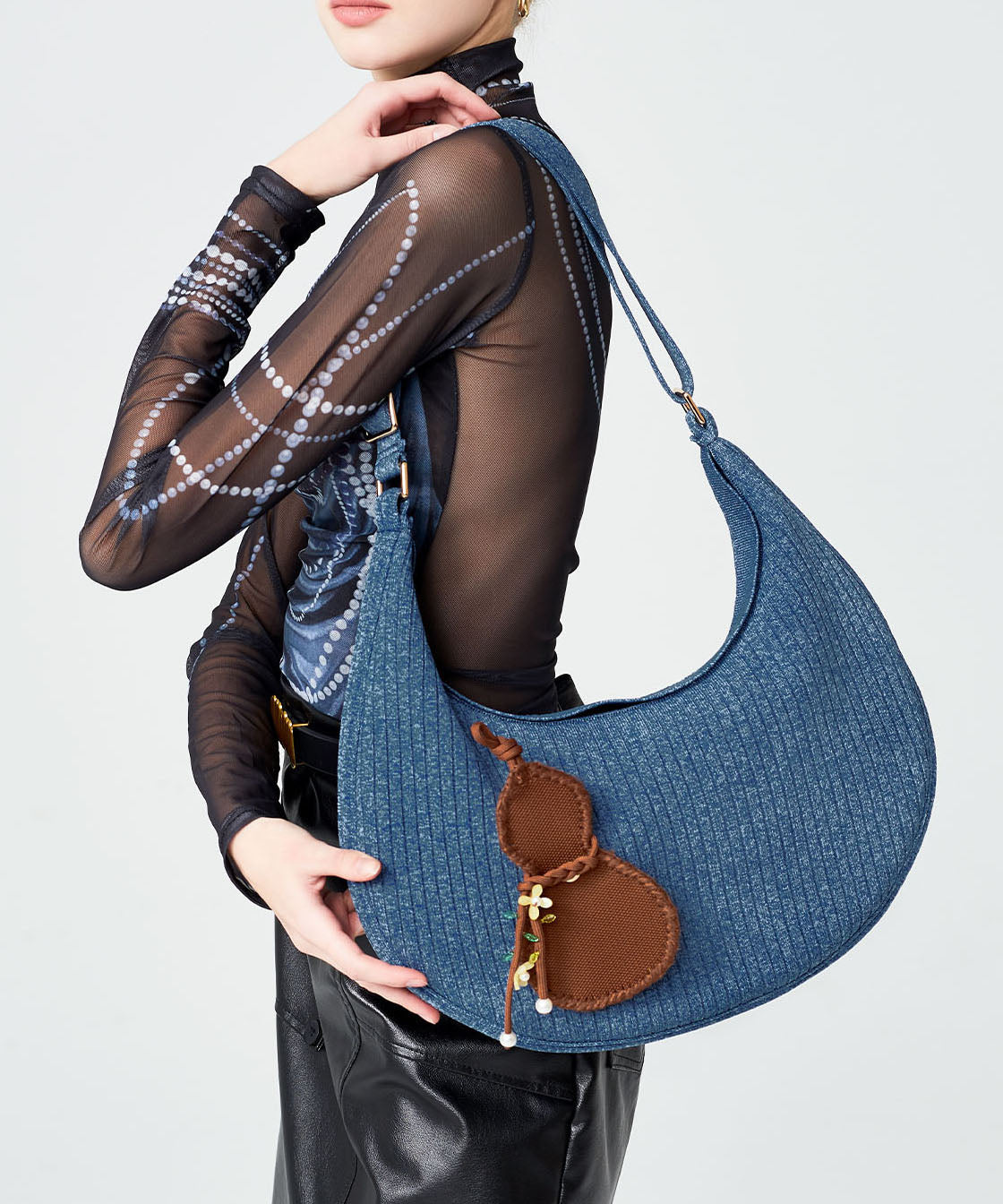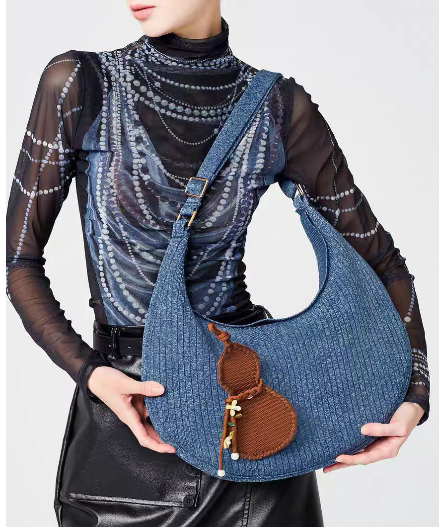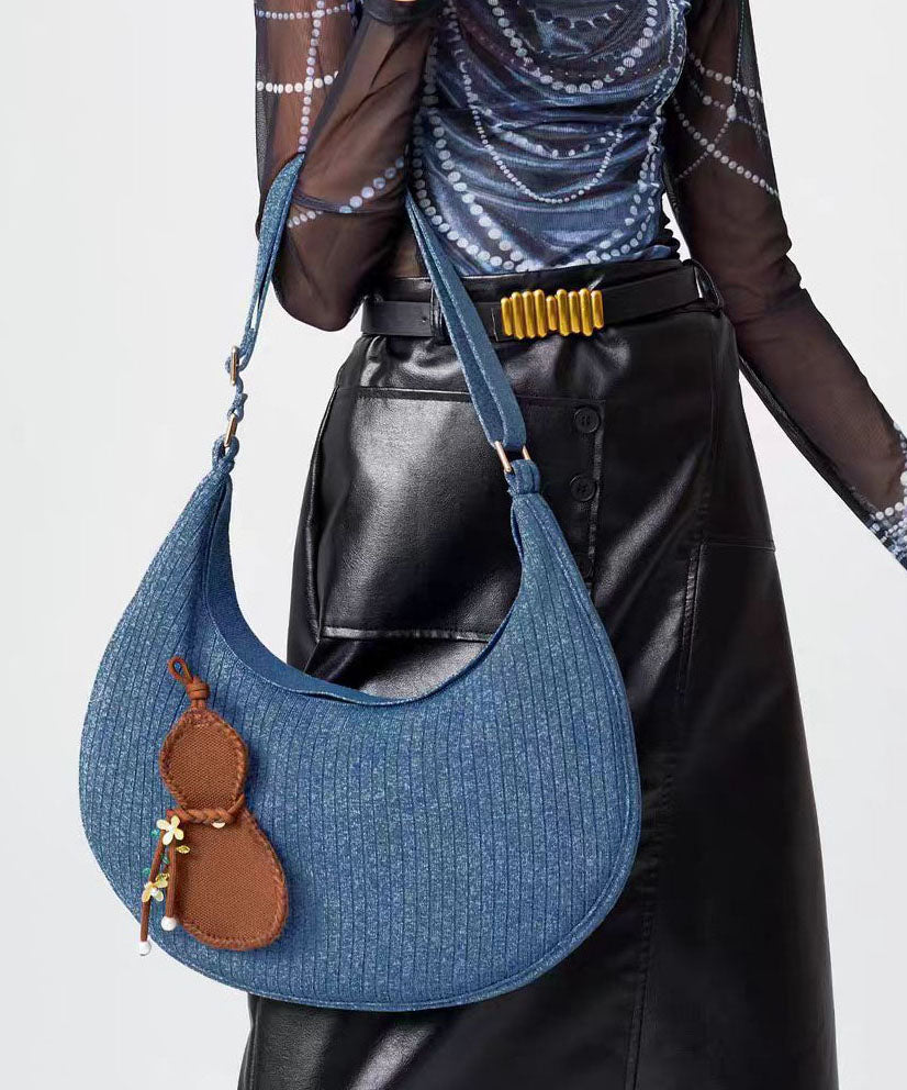 Retro Denim Blue Solid Durable Pendant Cotton Hobo Bag