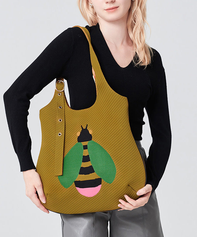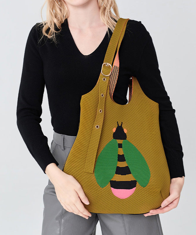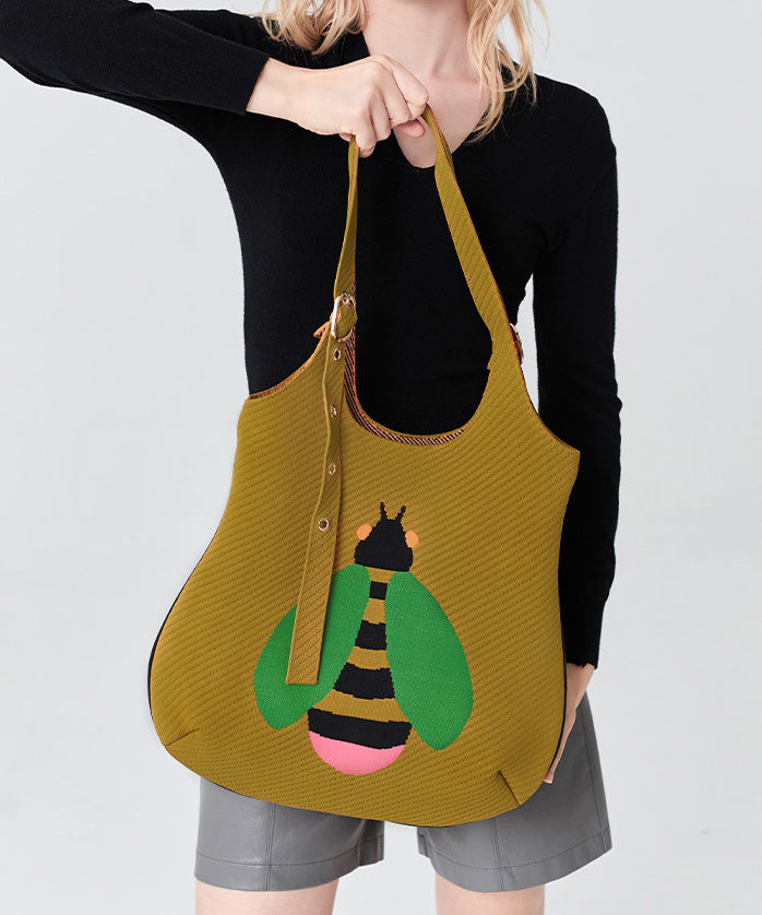 Retro Yellow Solid Durable Little Bee Embroidered Cotton Shoulder Bags