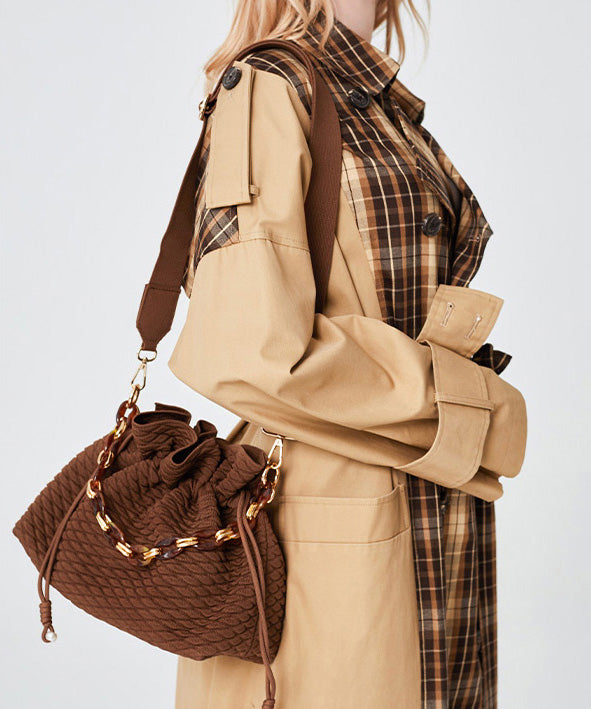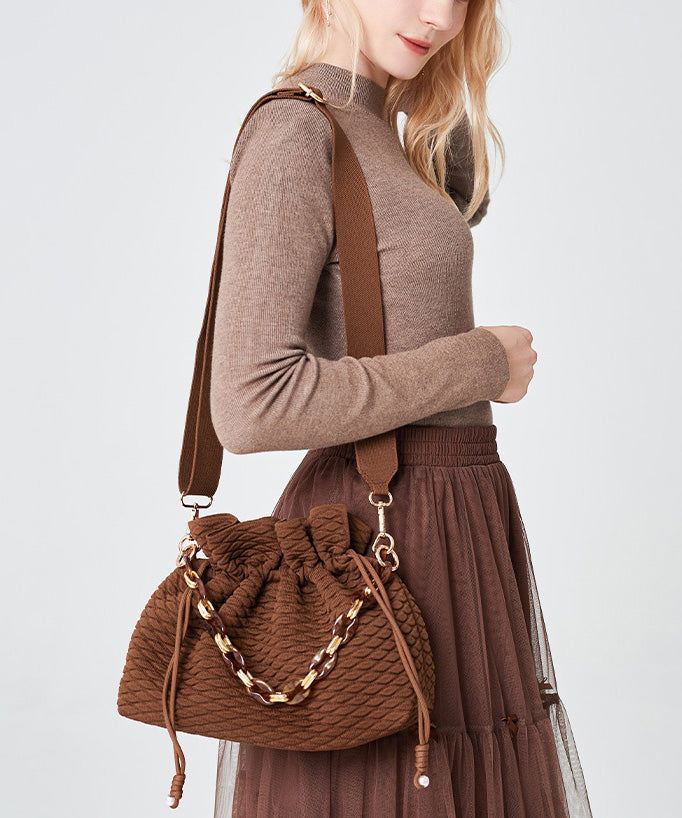 Style Brown Large Capacity Drawstring Cotton Pouch Handbag
