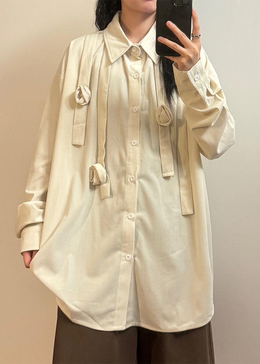 Loose White Peter Pan Collar Button Solid Cotton Shirts Spring