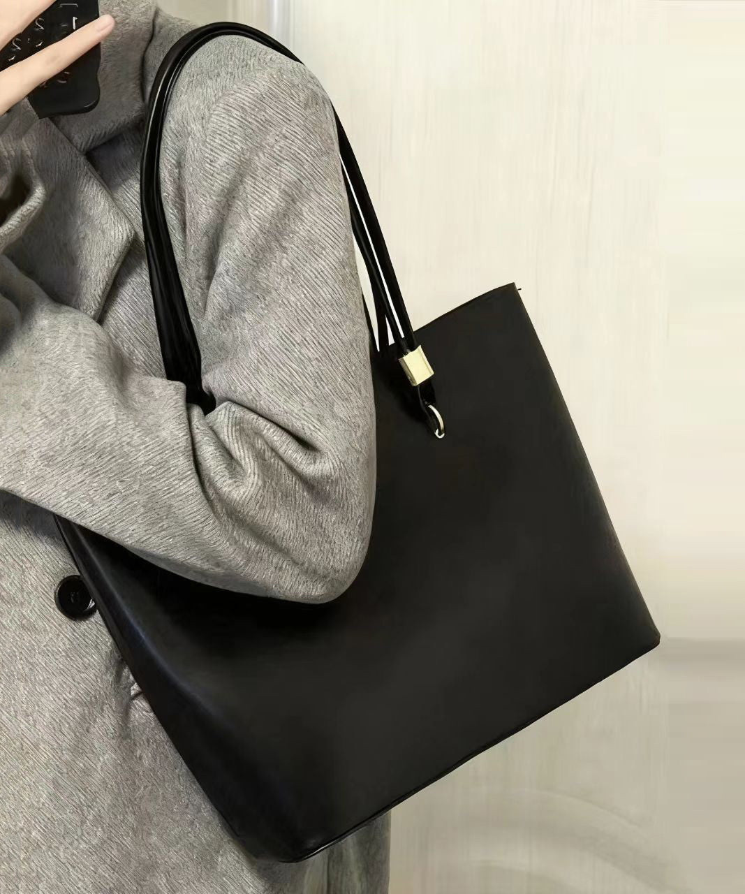 Classy Black Solid Durable Large Capacity Faux Leather Shoulder Bags