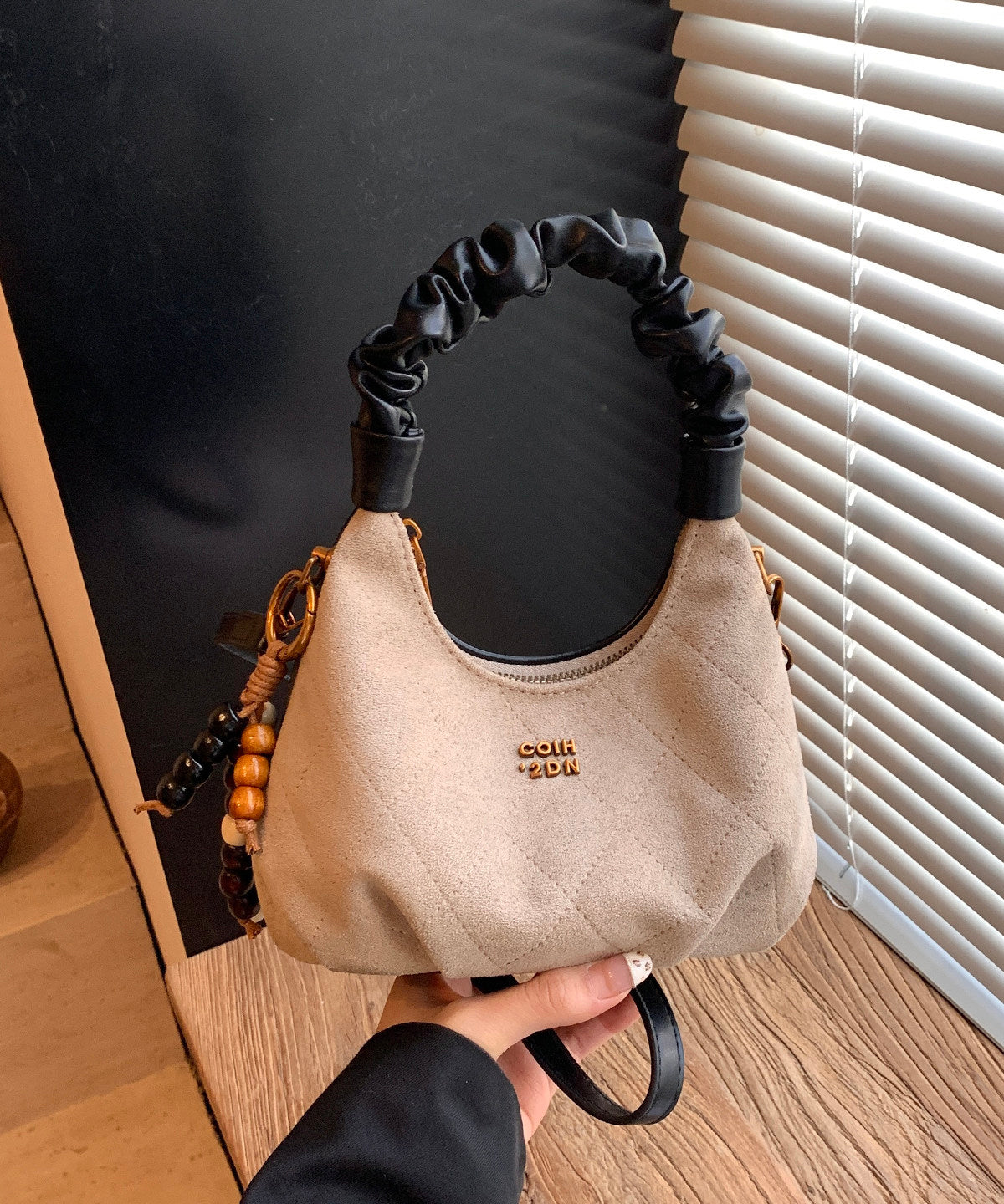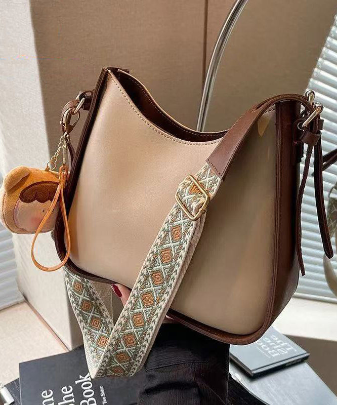 Fine Beige Fuzzy Ball Decorated Faux Leather Messenger Bag