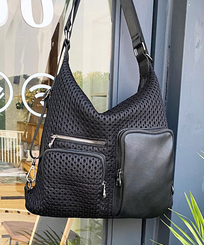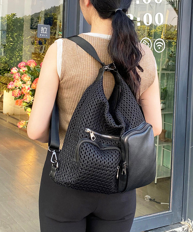 Stylish Black Hollow Out Pockets Cotton Versatile Backpack Bag