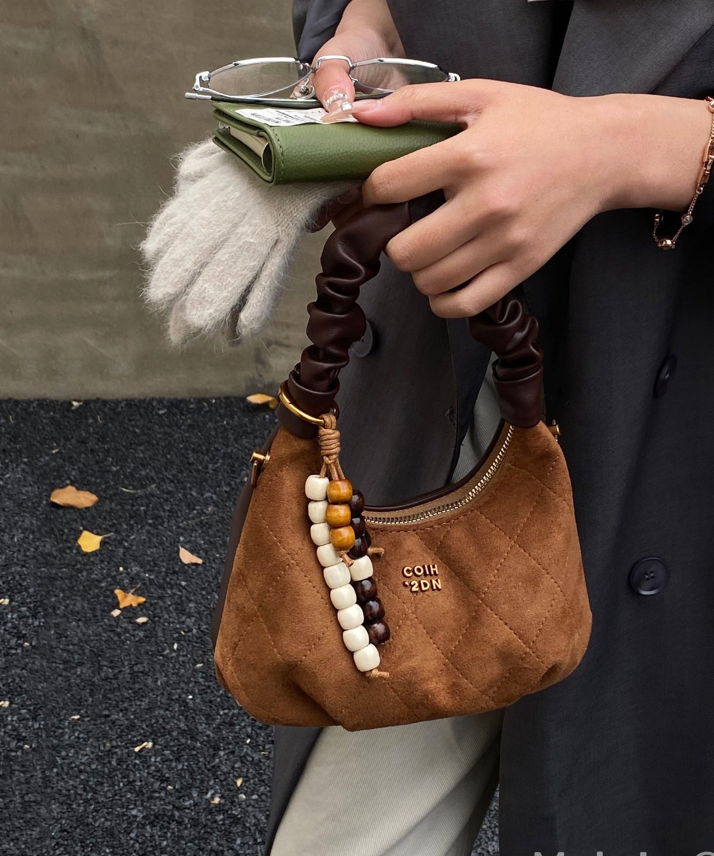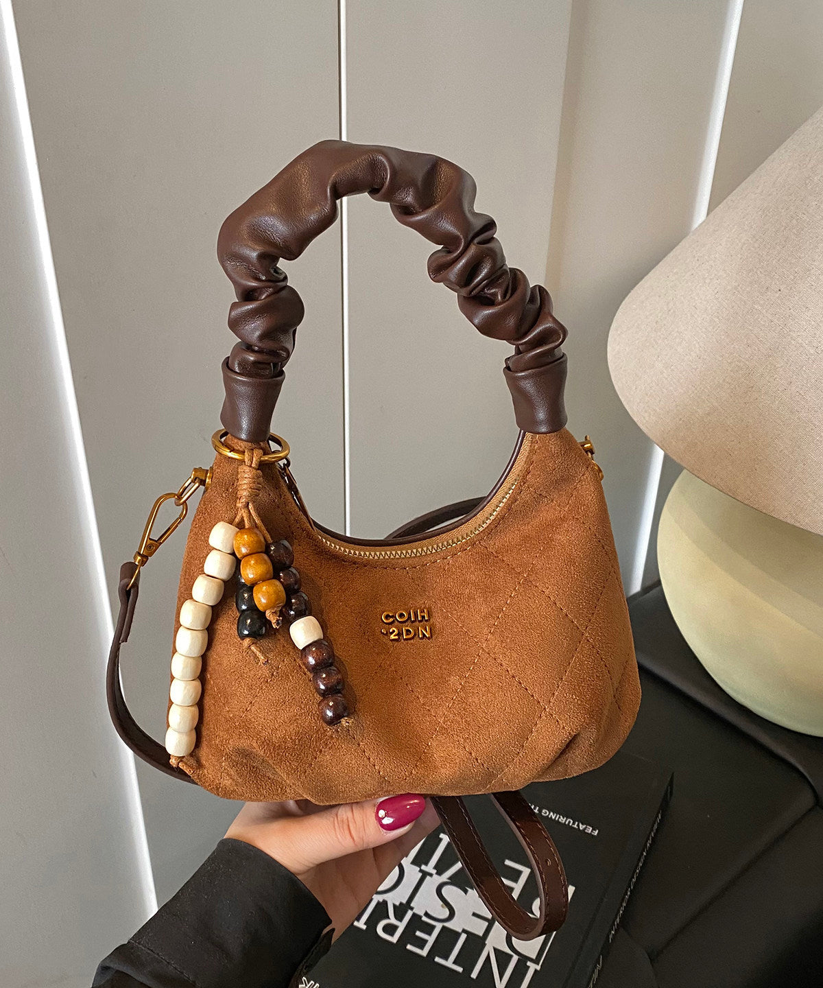 Handmade Brown Fuzzy Ball Decorated Faux Leather Side Pack