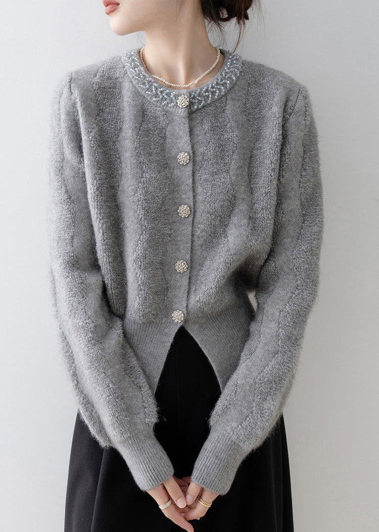 French Grey V Neck Button Knit Cardigans Spring