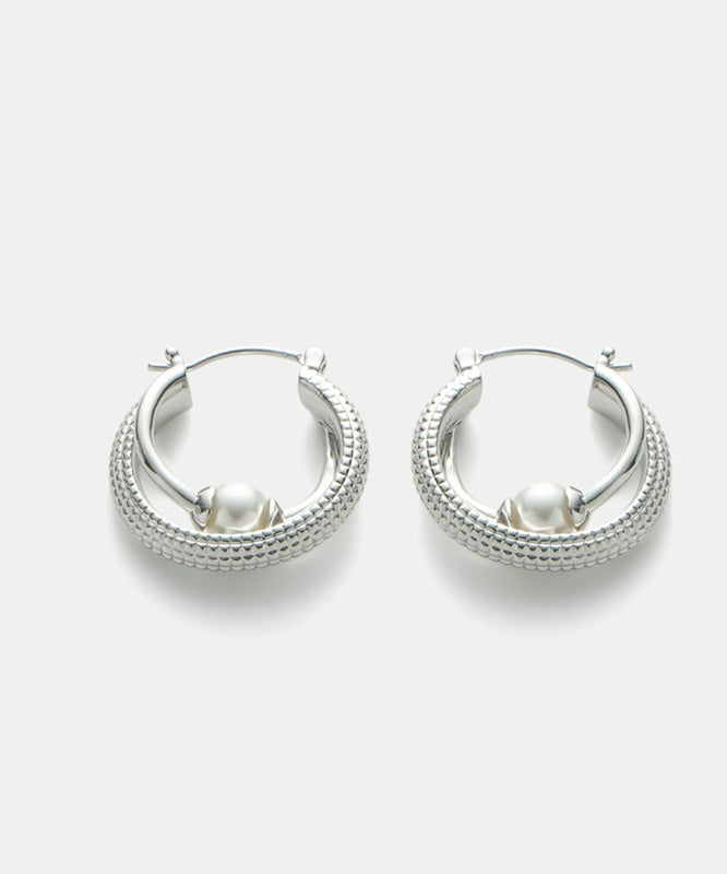 Style Silk Sterling Silver Double-Layer Pearl Hoop Earrings