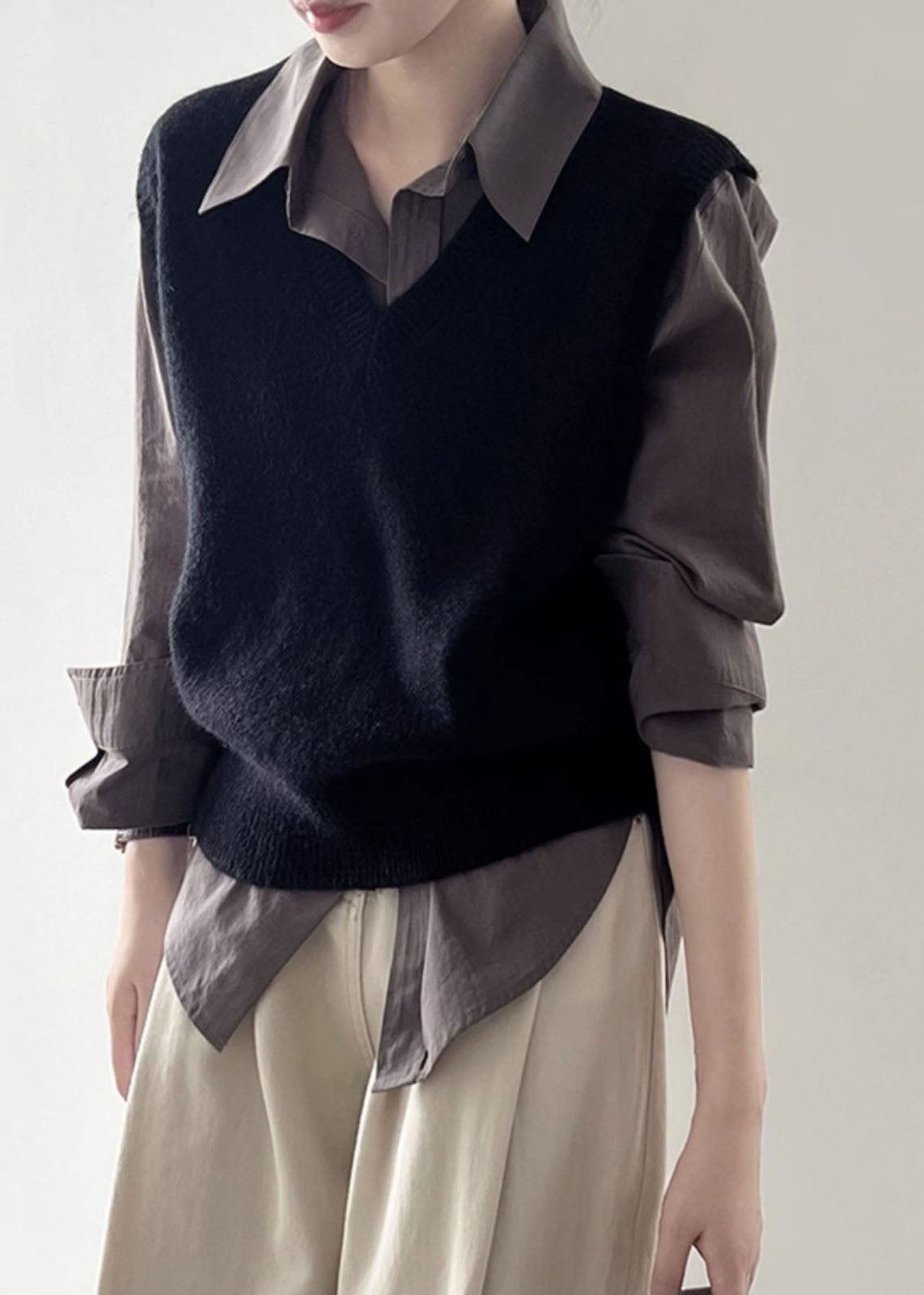 Brief Black V Neck Cozy Cotton Knit Waistcoat Spring