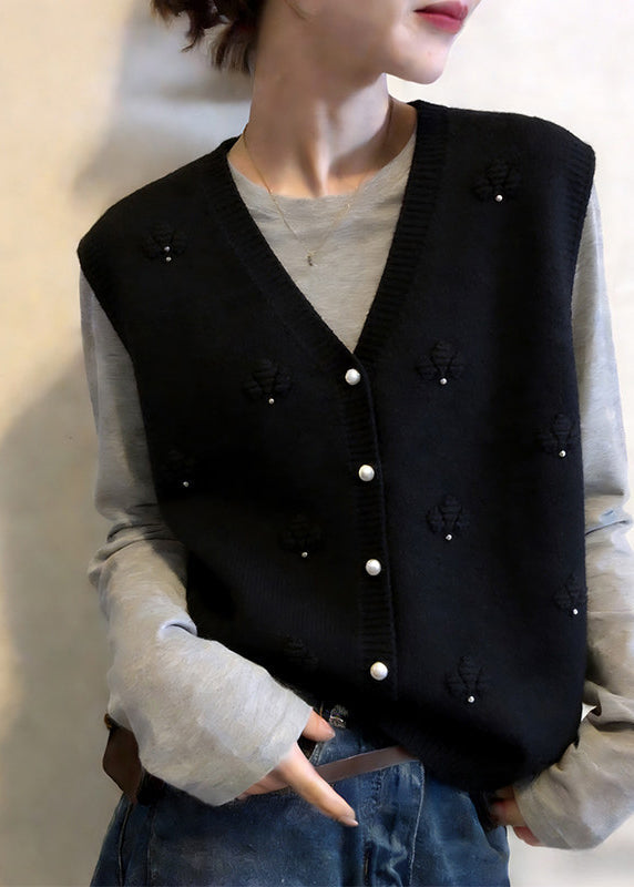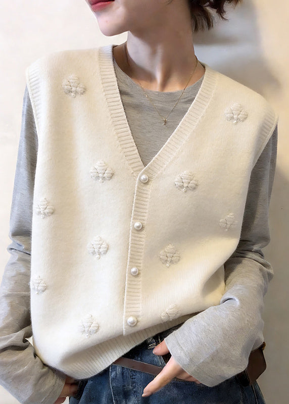 Modern Apricot V Neck Floral Button Cotton Knit Waistcoat Sleeveless