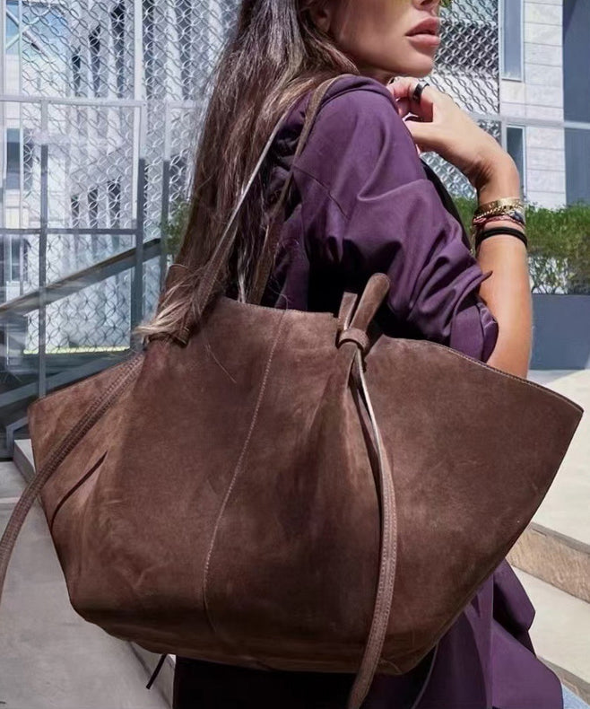 Style Brown Solid Durable Large Capacity Suede Shoulder Bags