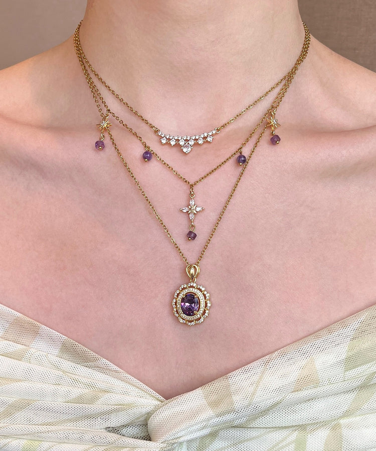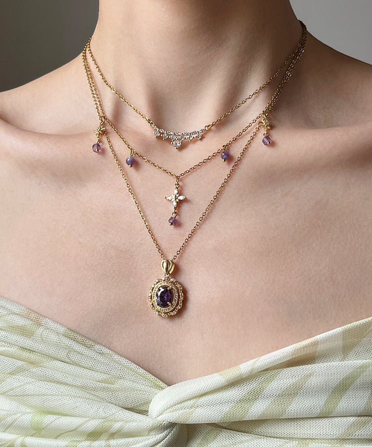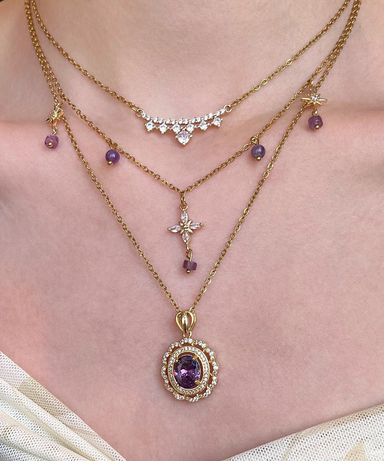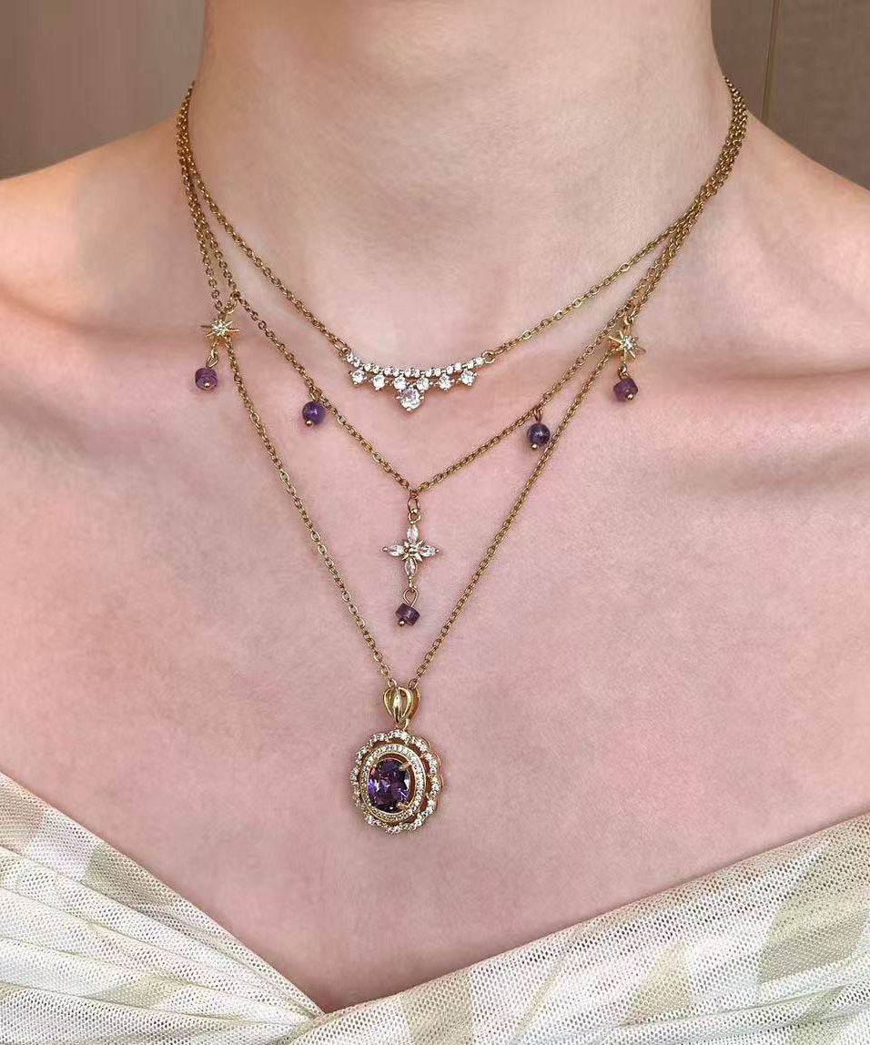 Retro Purple Zircon Layering Alloy Two Piece Set Pendant Necklace