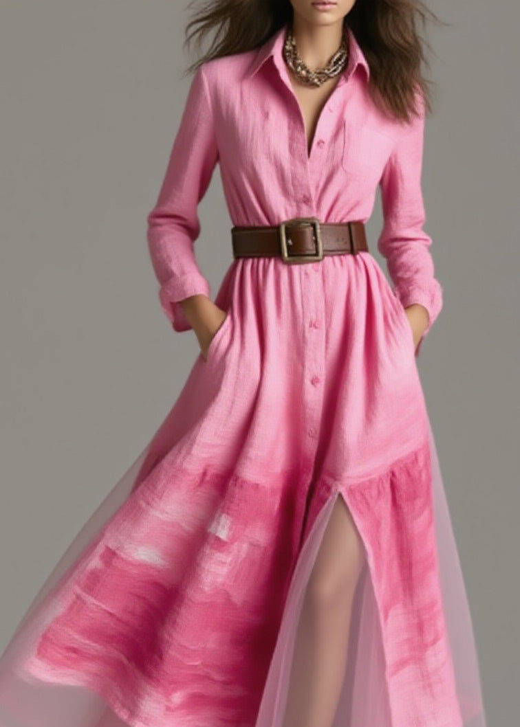 New Pink Peter Pan Collar Print Patchwork Cotton Dress Spring