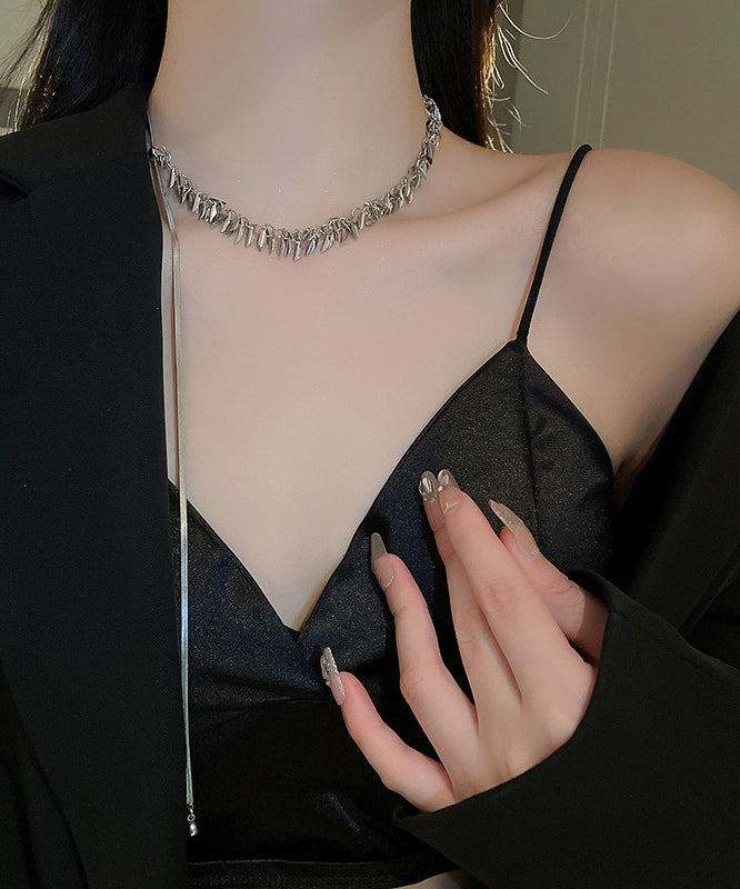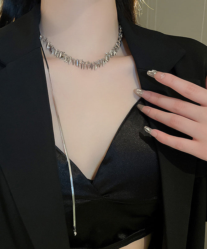 Simple Silk Alloy Sequins Patchwork Tassel Retractable Pendant Necklace