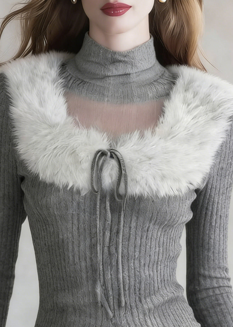 French Grey Turtleneck Patchwork Cotton Knit Sweaters Spring