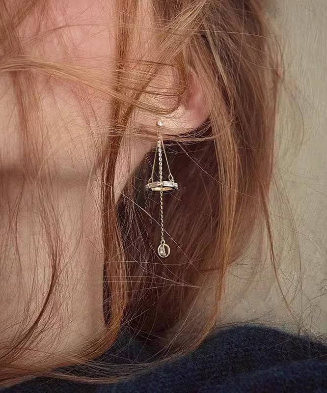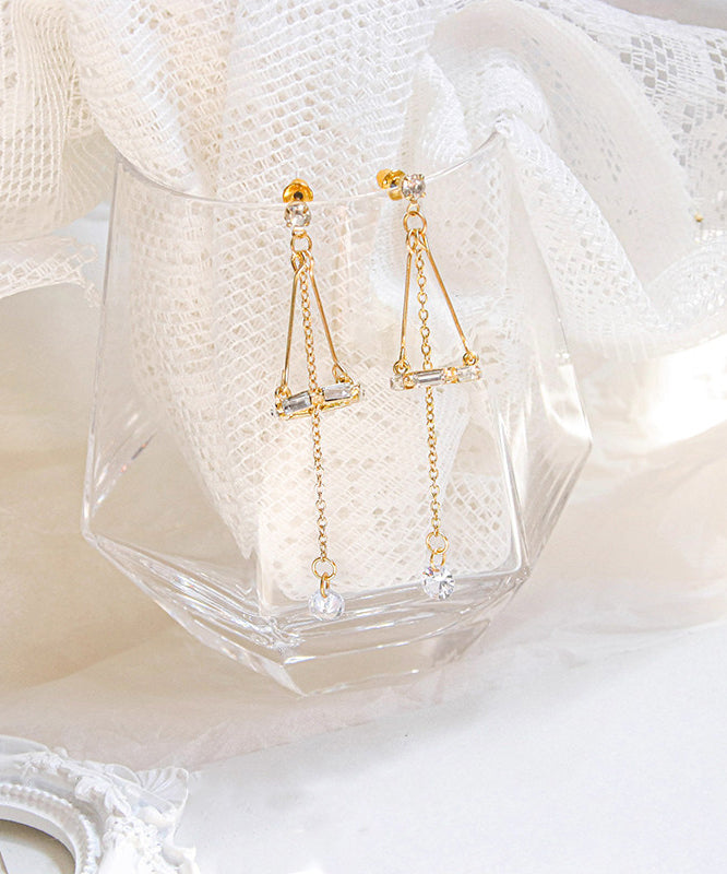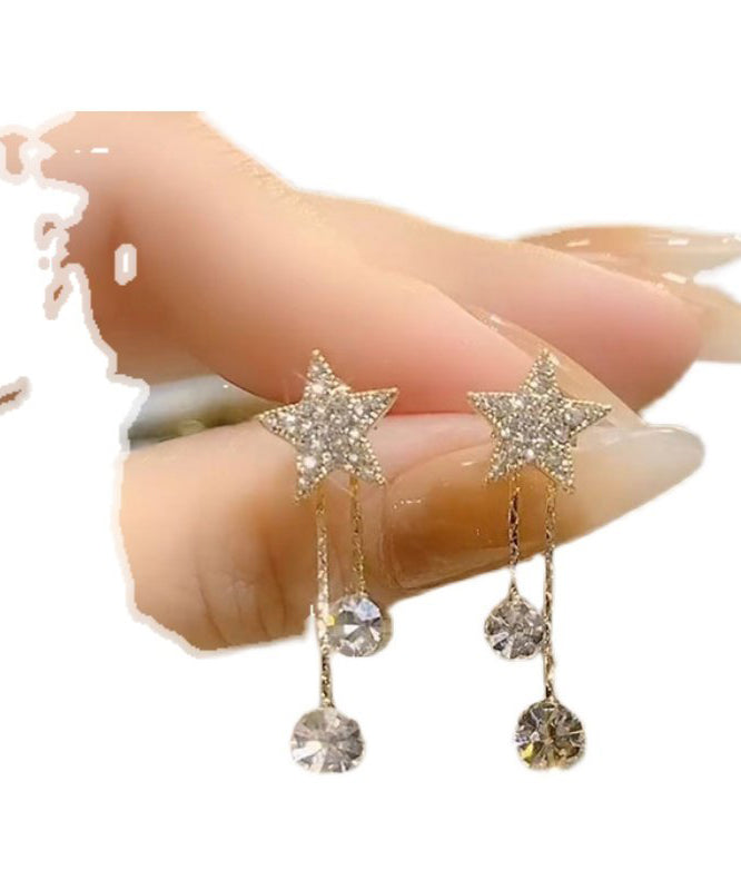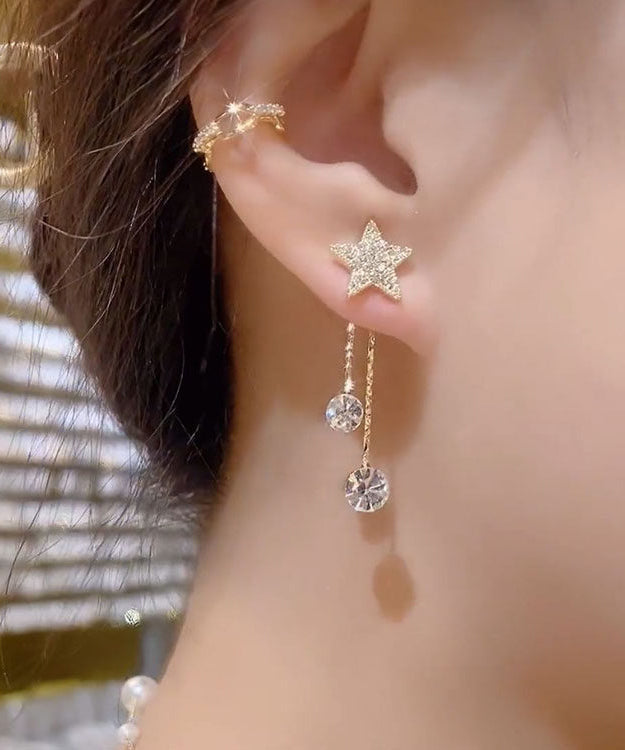 Art Gold Sterling Silver Overgild Zircon Star Tassel Drop Earrings