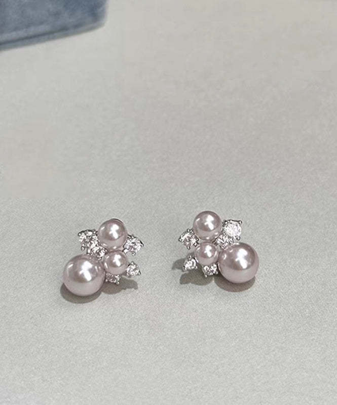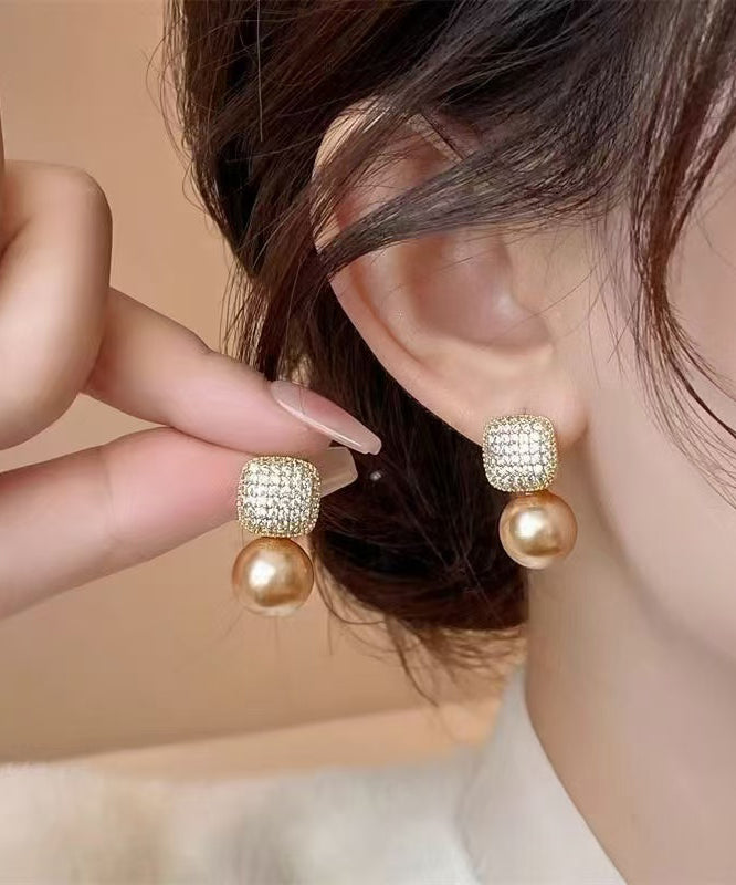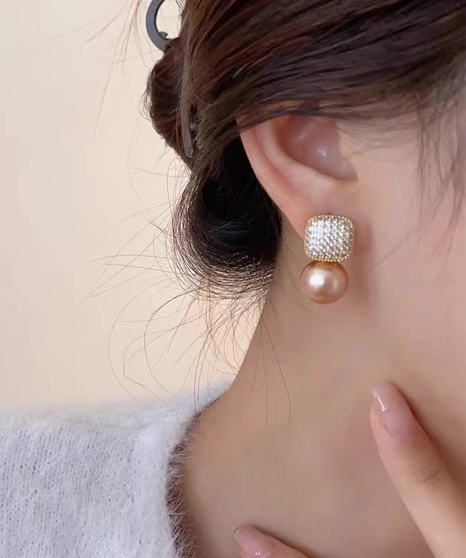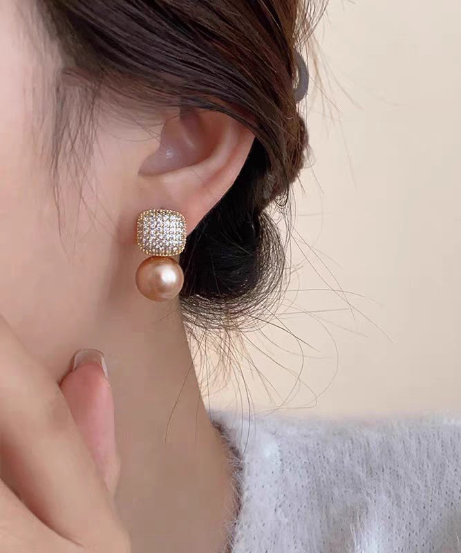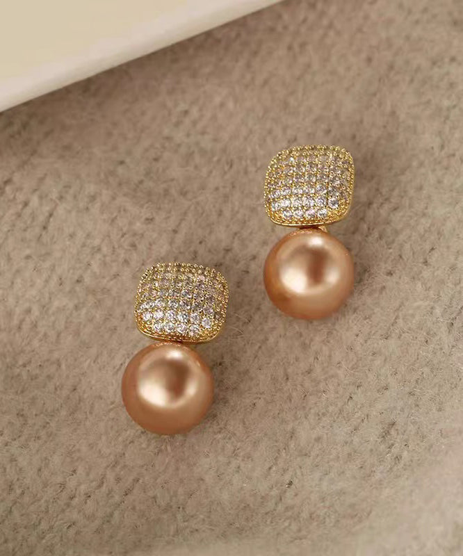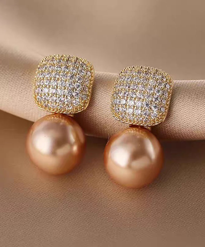 Chic Champagne Copper Overgild Zircon Pearl Stud Earrings
