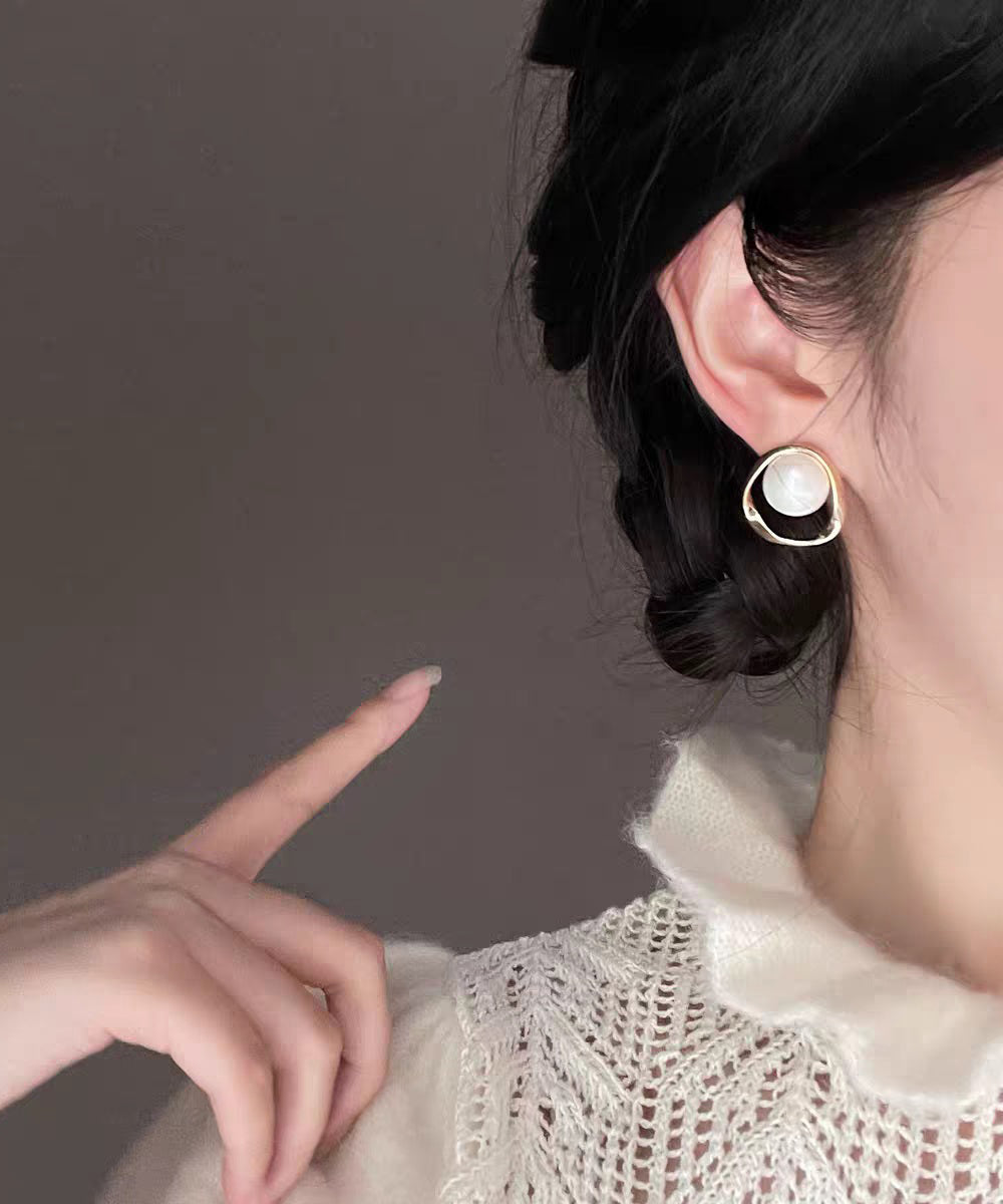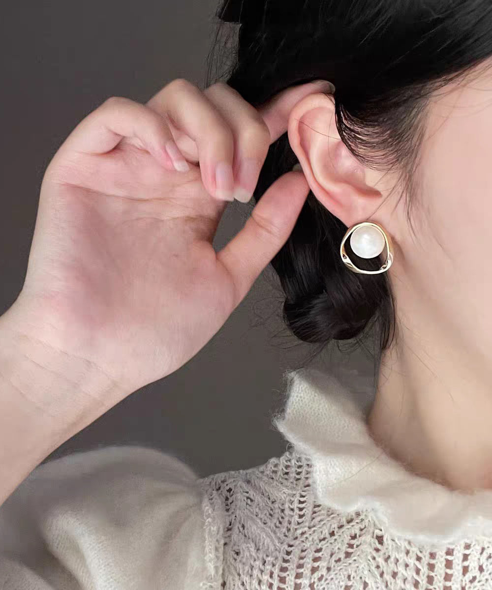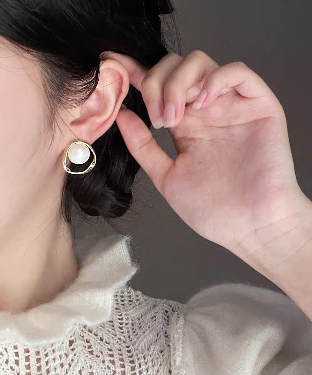 DIY White Copper Overgild Pearl Stud Earrings
