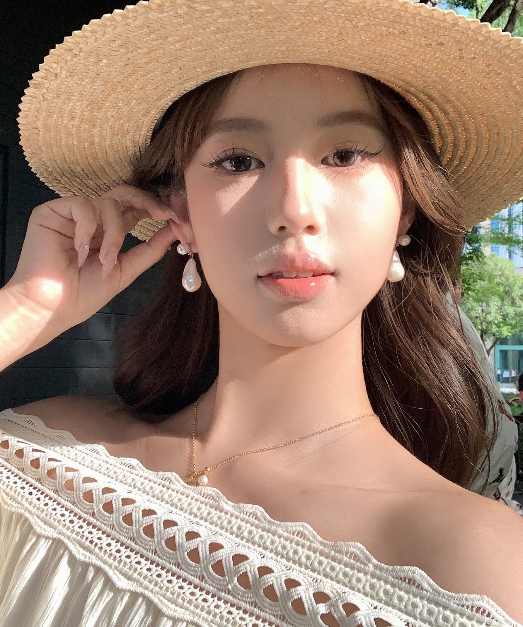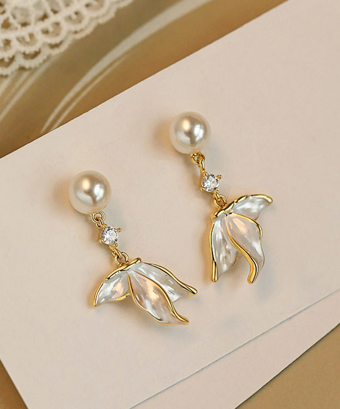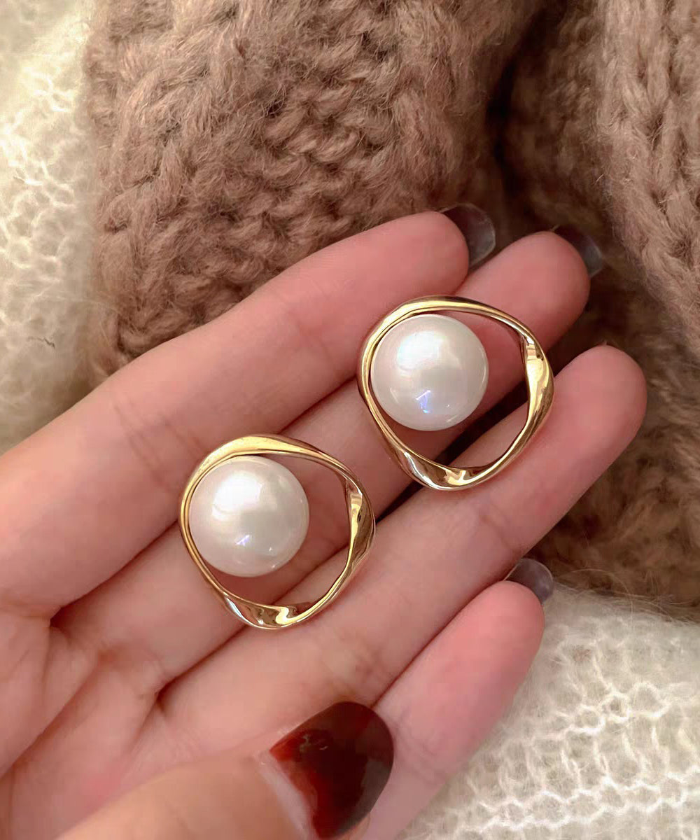 DIY White Copper Overgild Pearl Stud Earrings