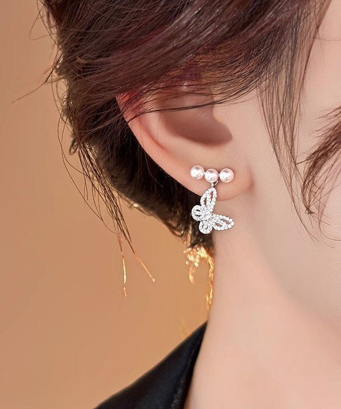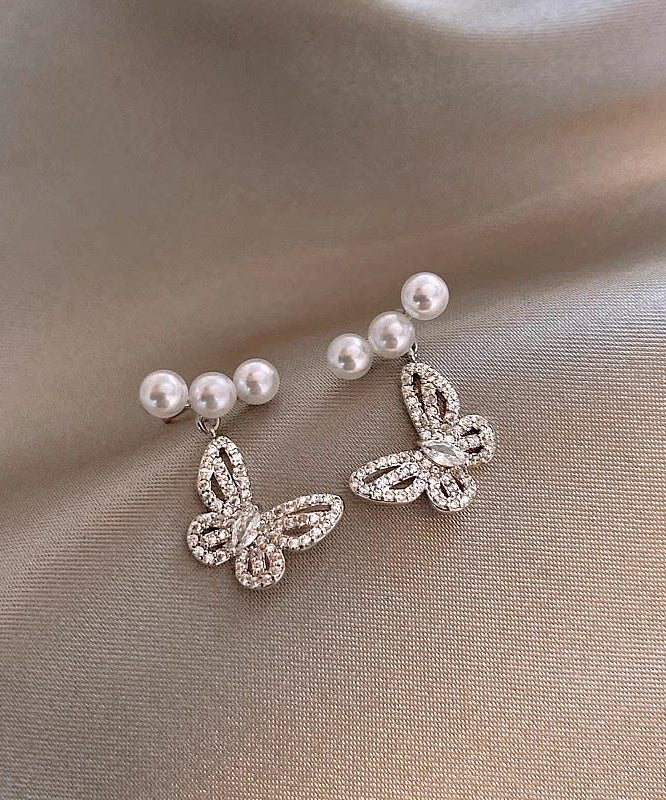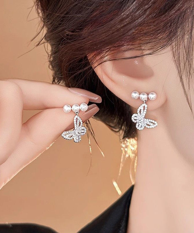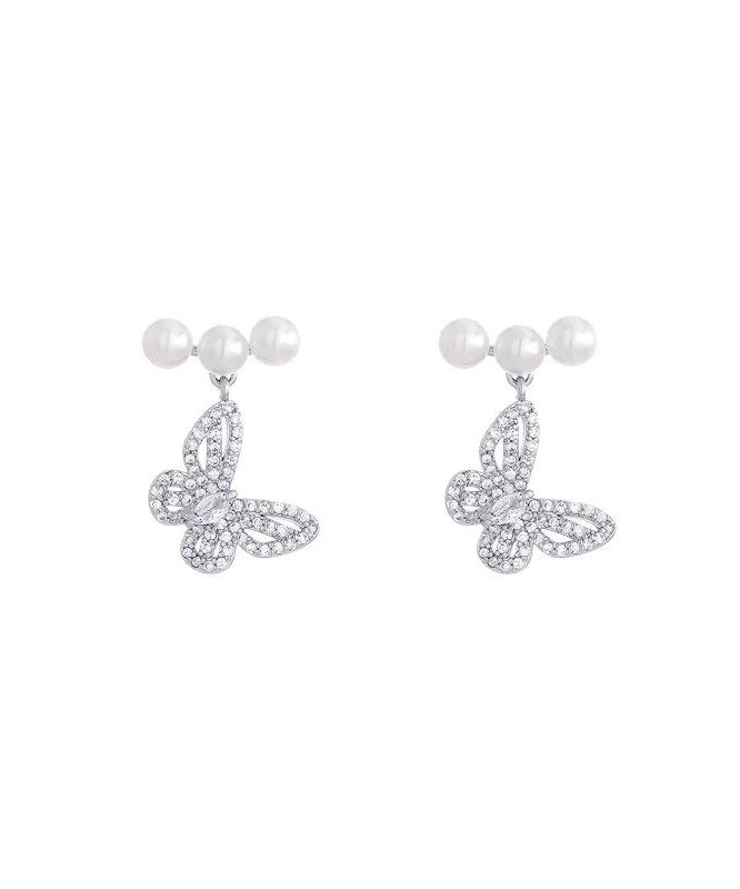 Fine Silk Copper Alloy Zircon Butterfly Pearl Drop Earrings
