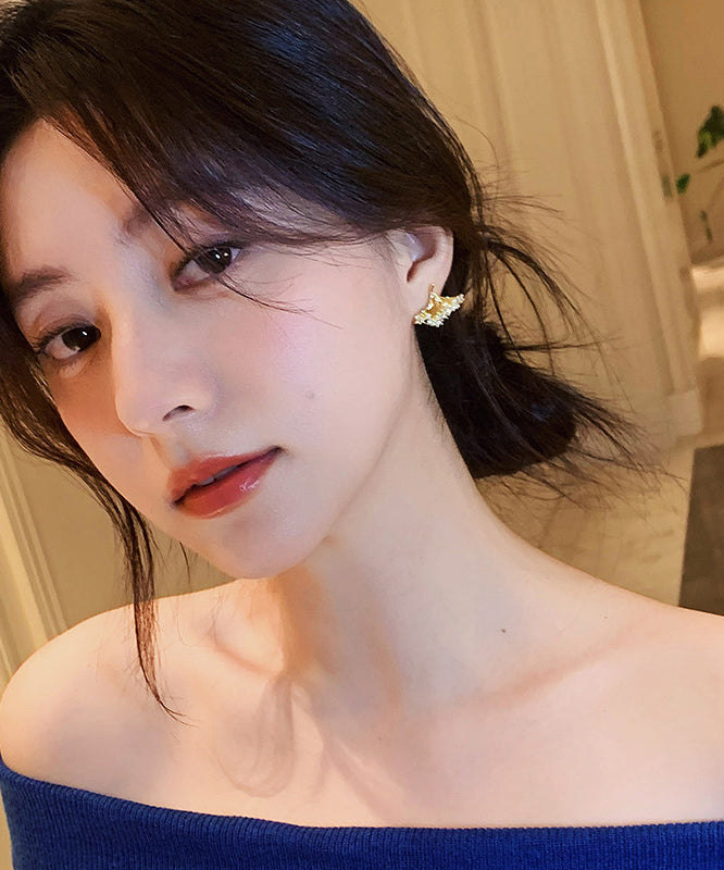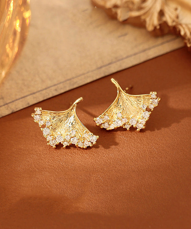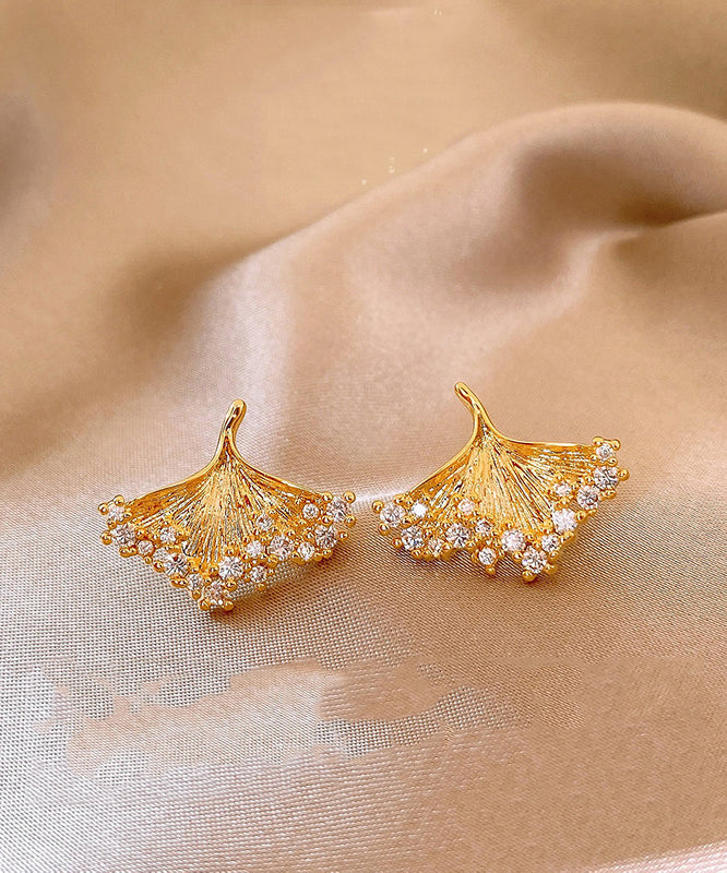 Modern Gold Copper Overgild Zircon Ginkgo Leaf Stud Earrings