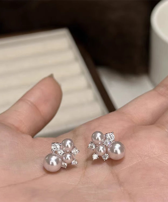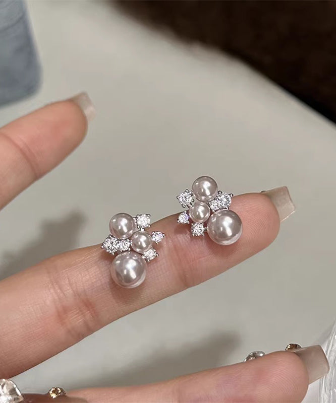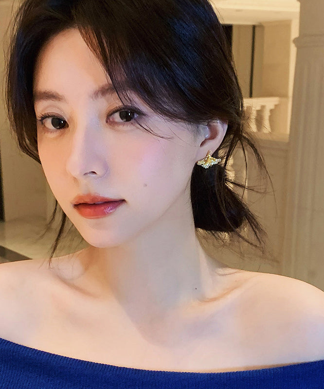 Original Design Copper Overgild Zircon Pearl Stud Earrings