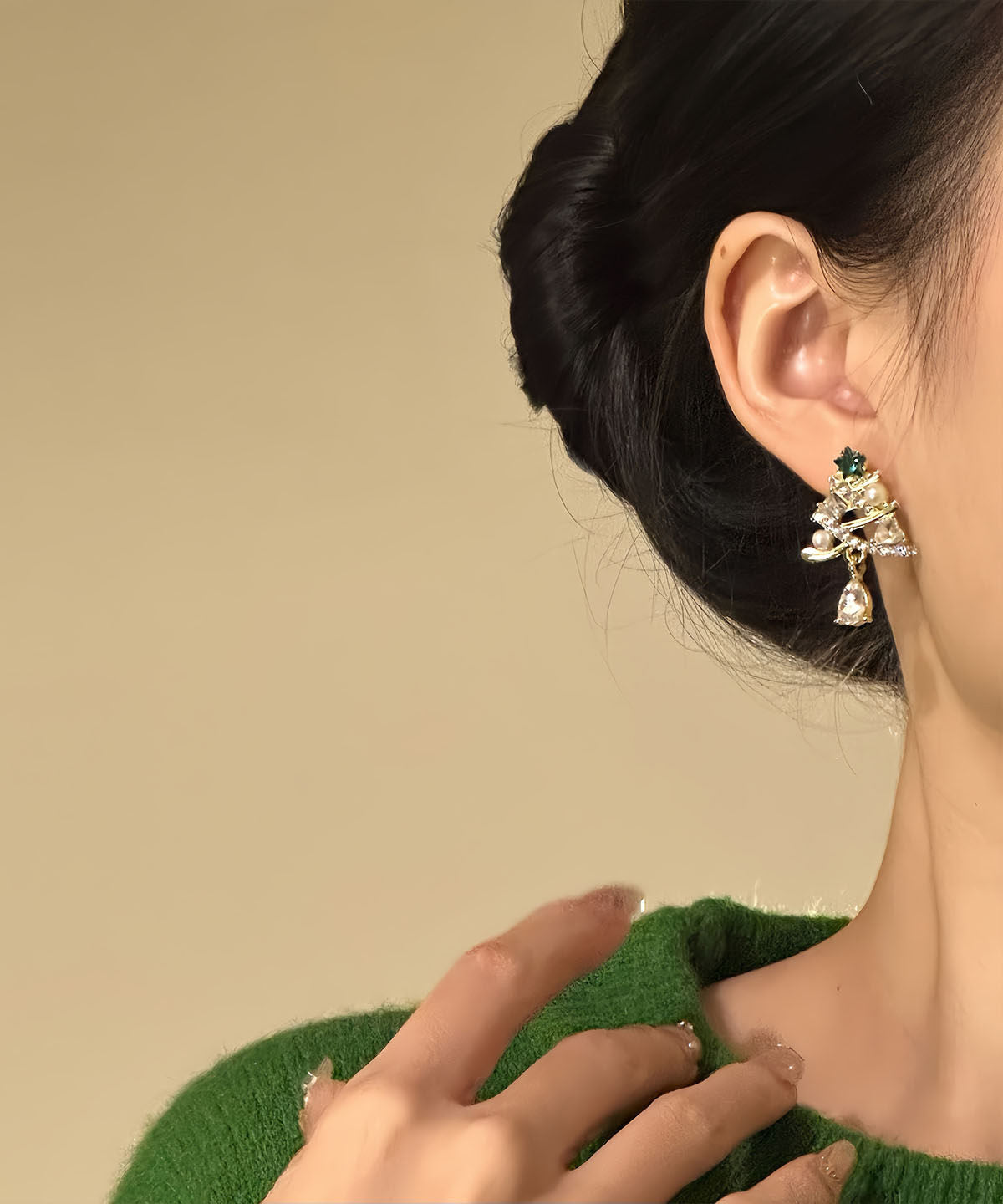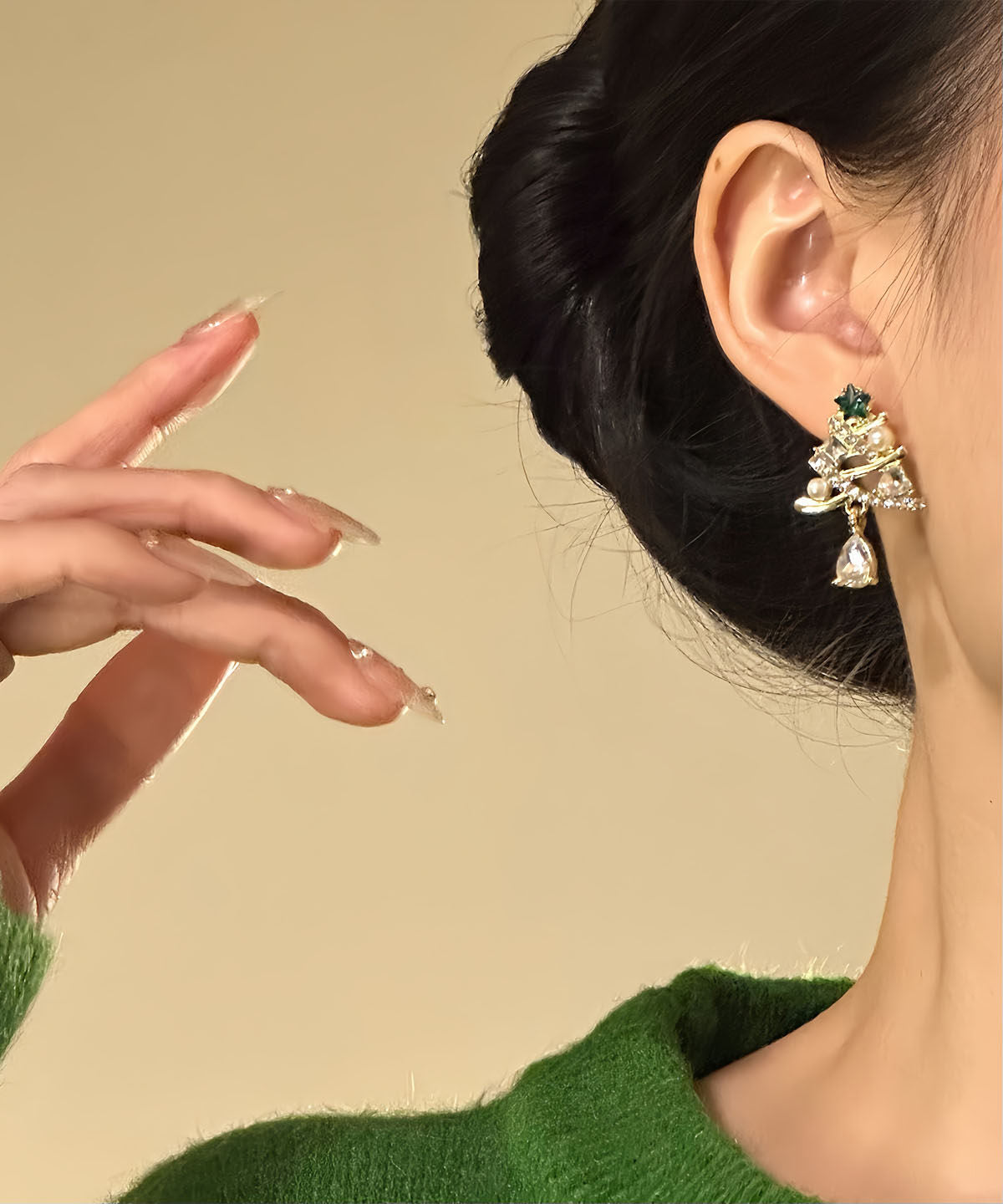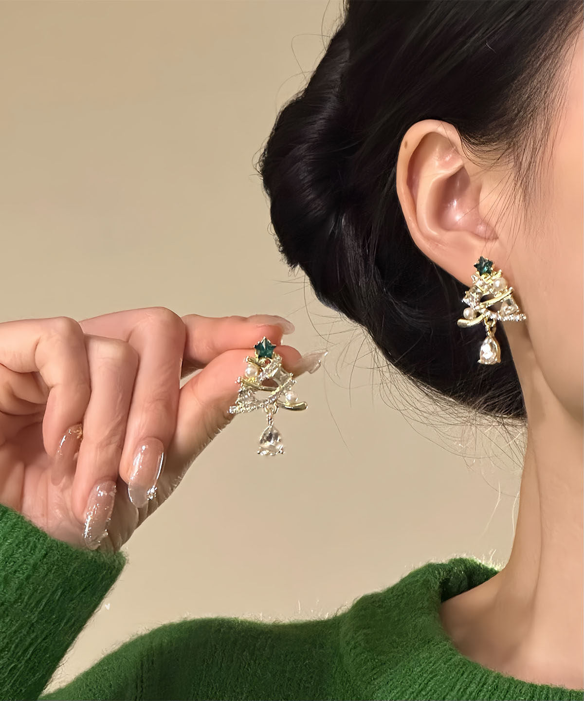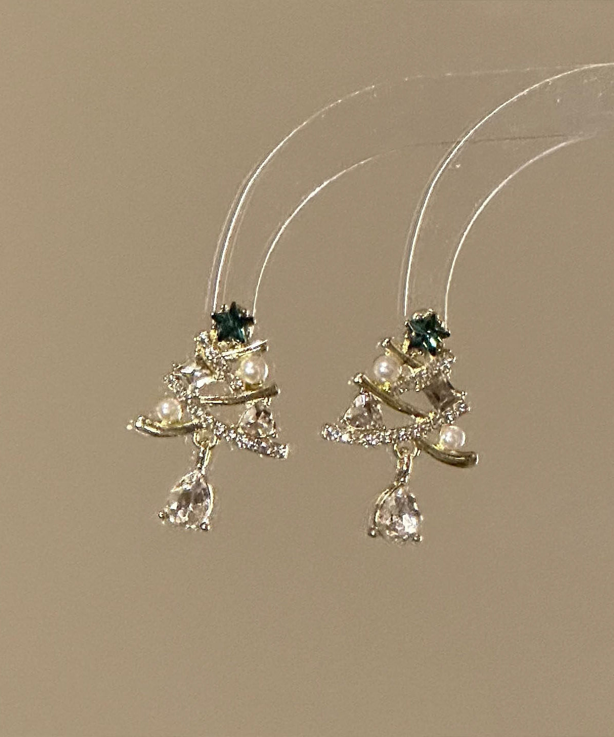 New Gold Copper Alloy Zircon Christmas Tree Water Droplet Drop Earrings