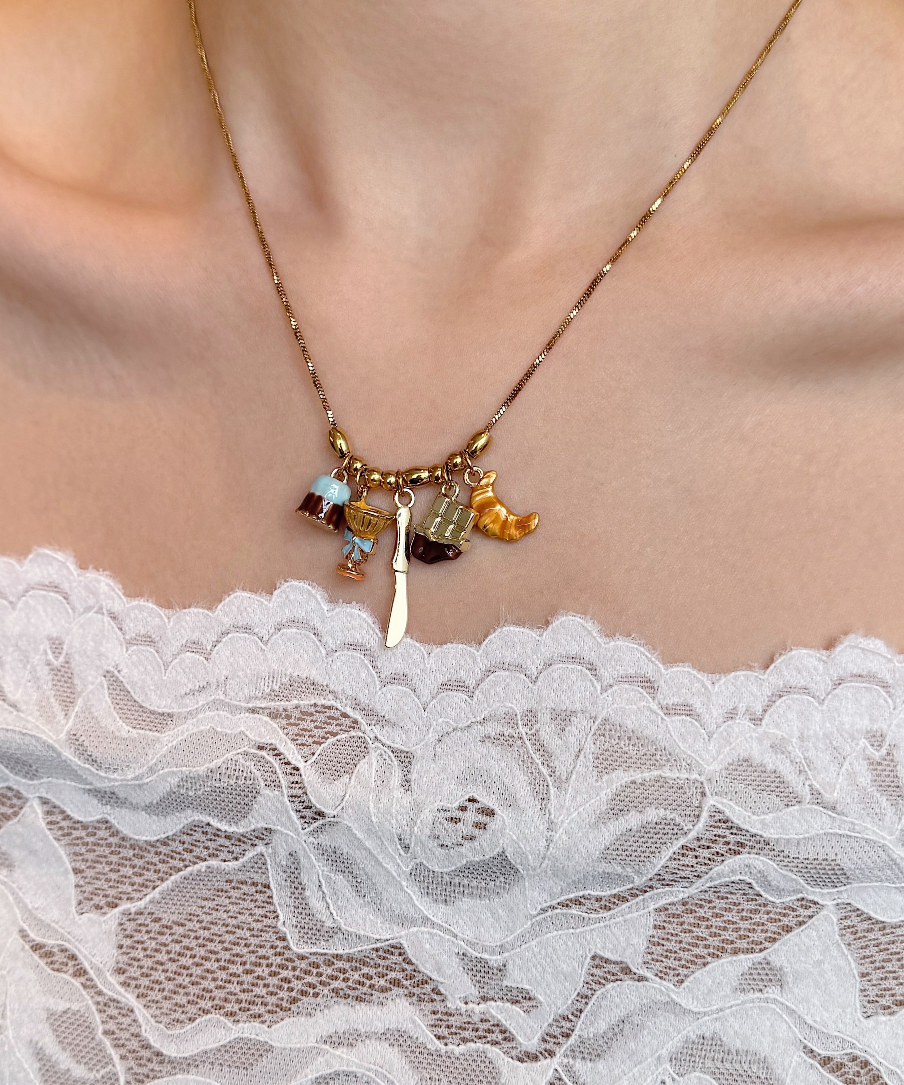 Original Design Gold Alloy Cake Croissant Pendant Necklace