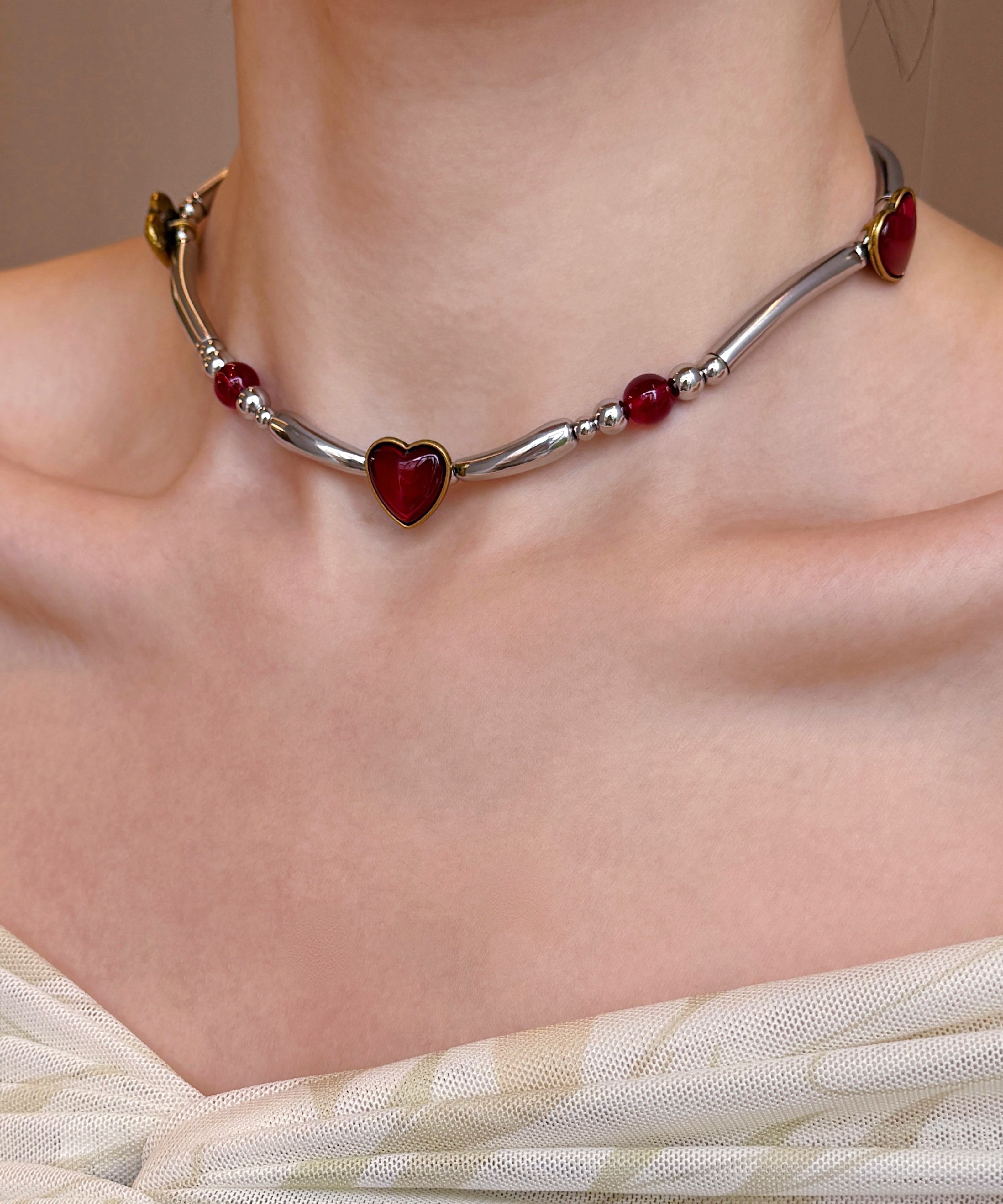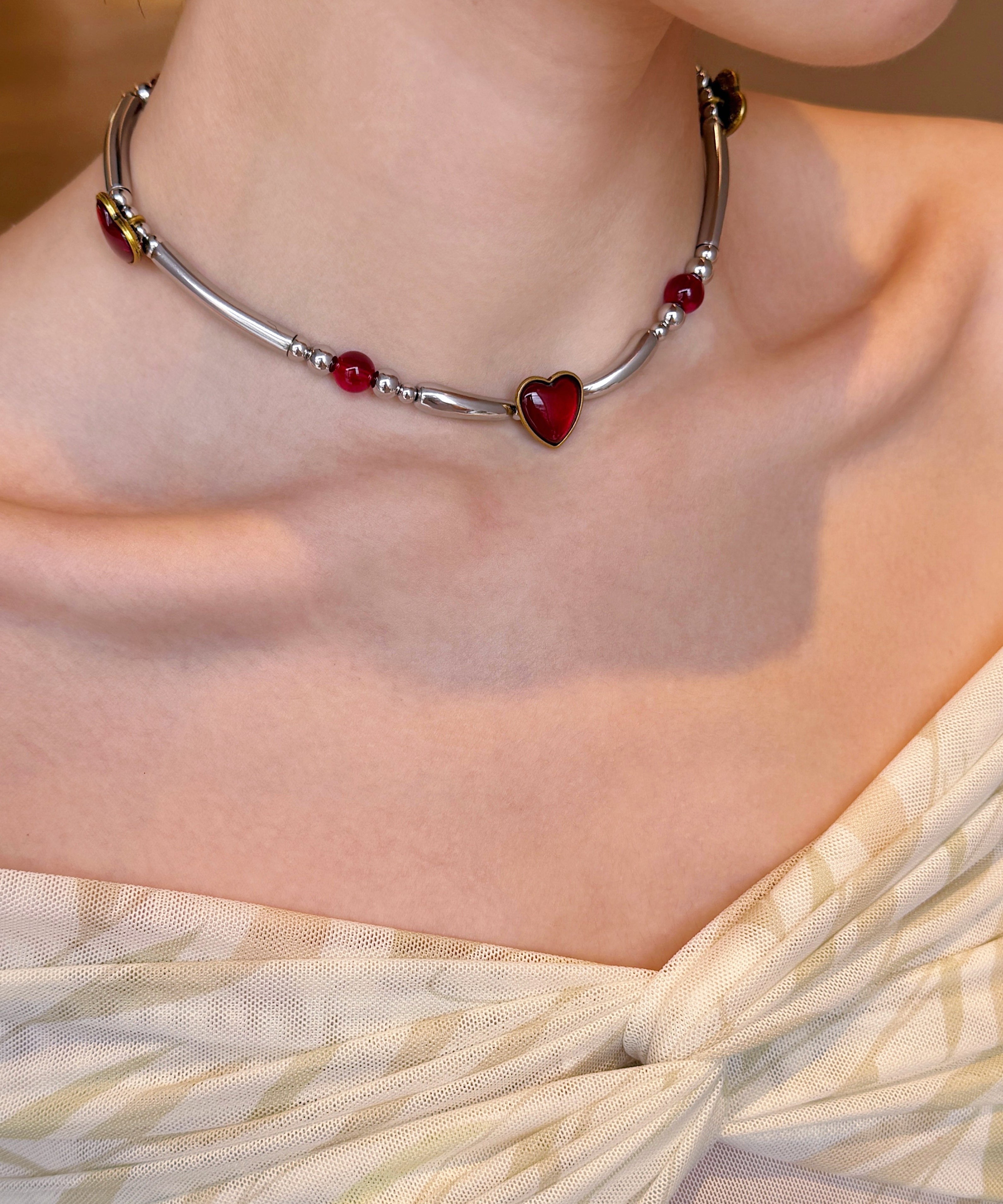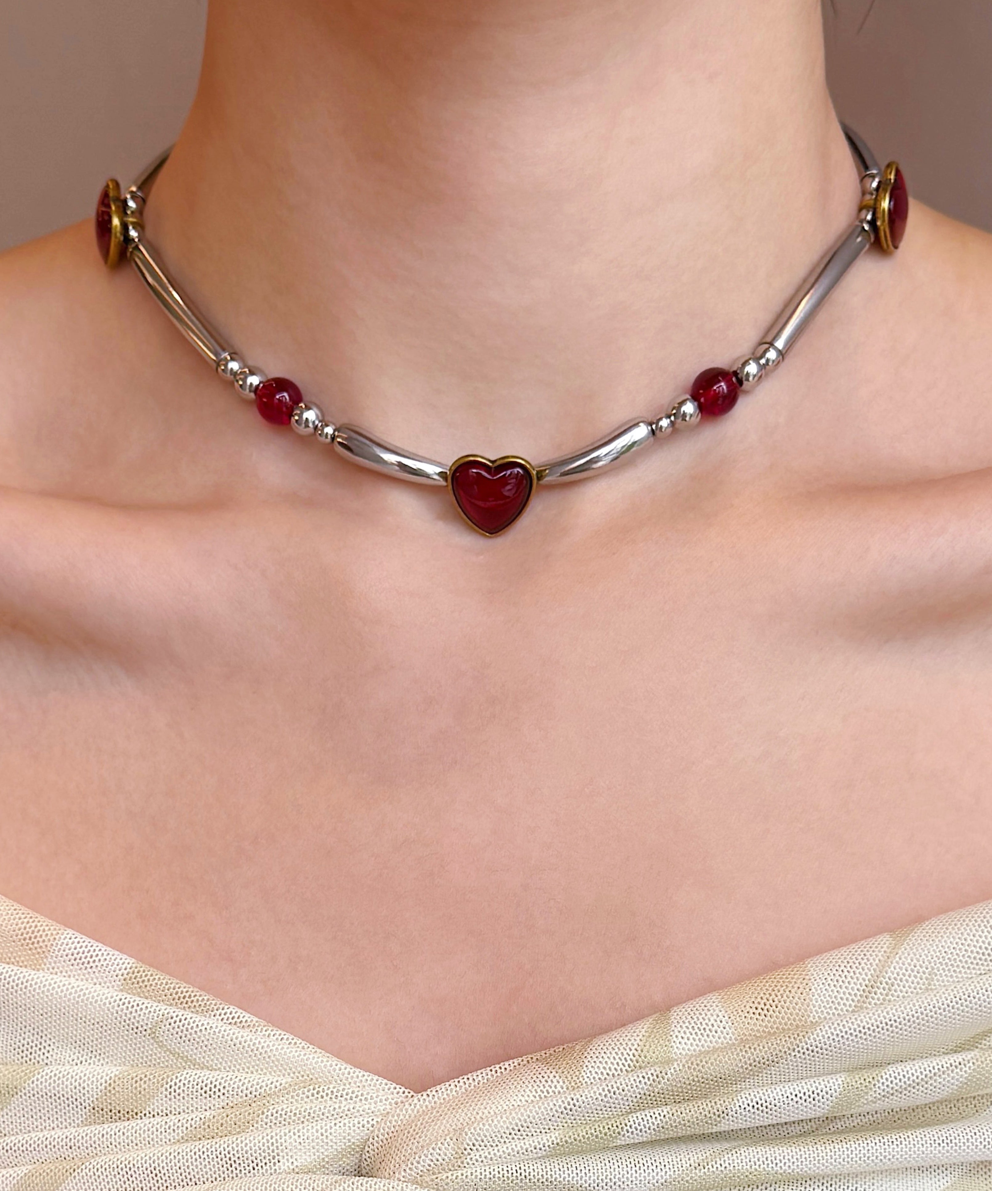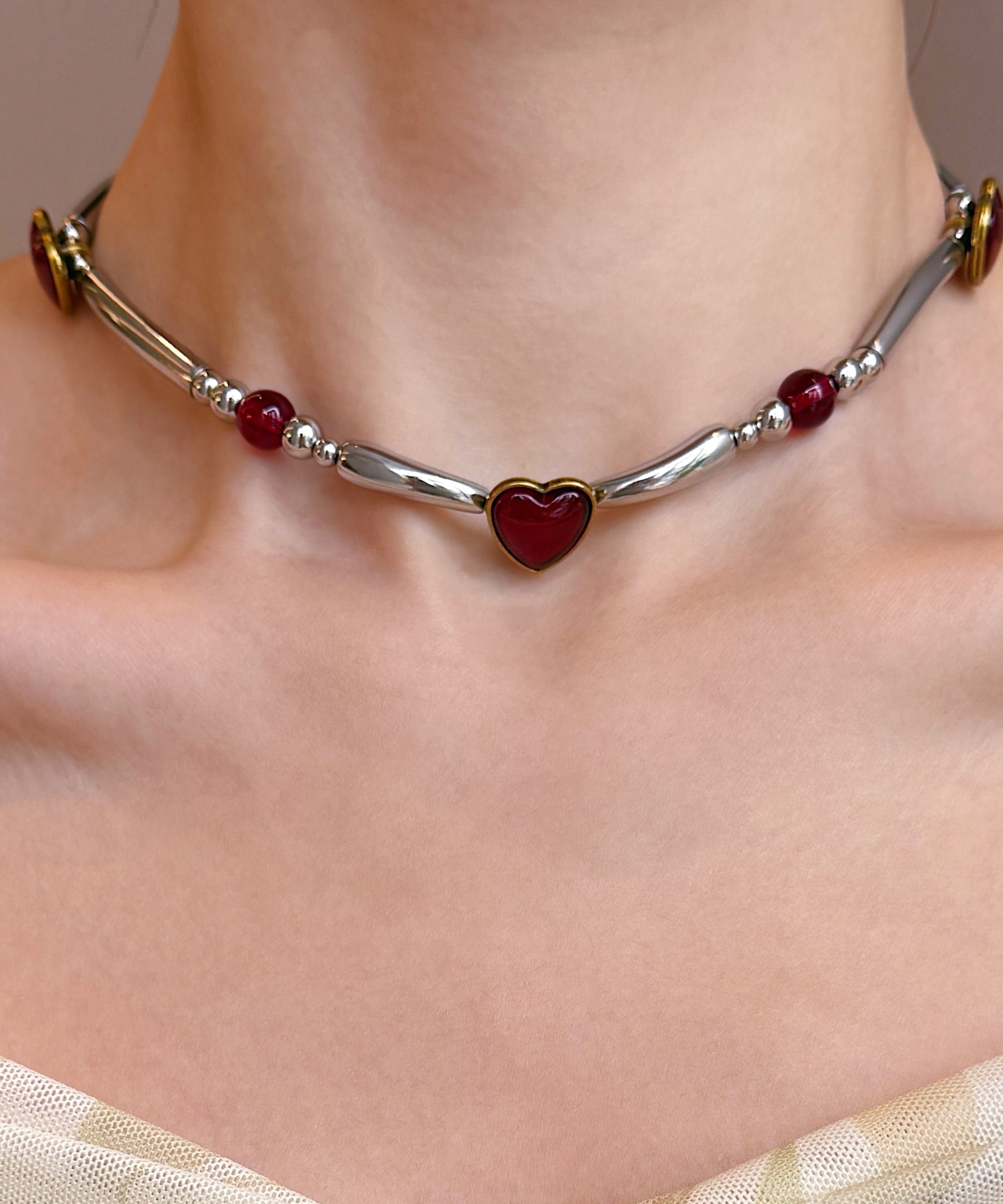 Original Red Stainless Steel Love Patchwork Choker