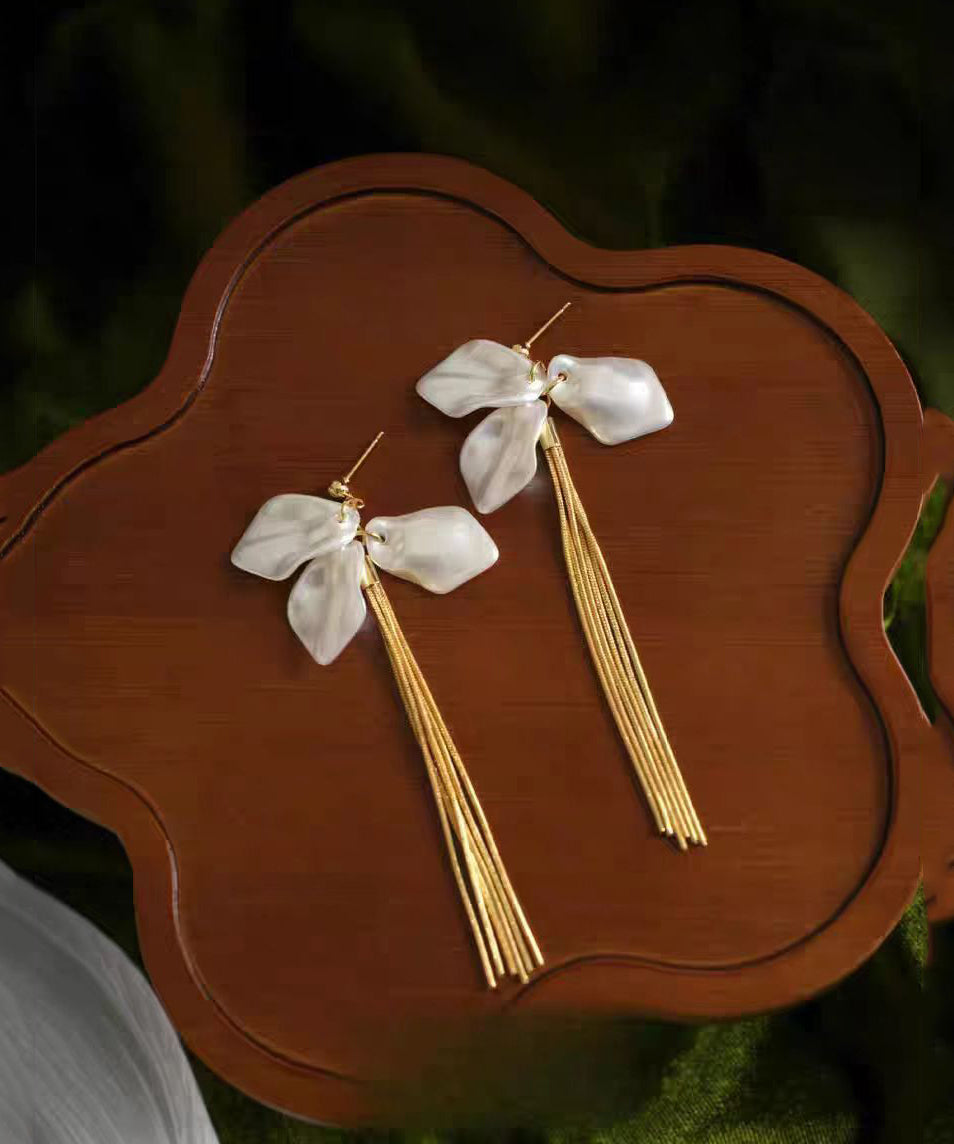 Regular Gold Copper Overgild Floral Tassel Drop Earrings