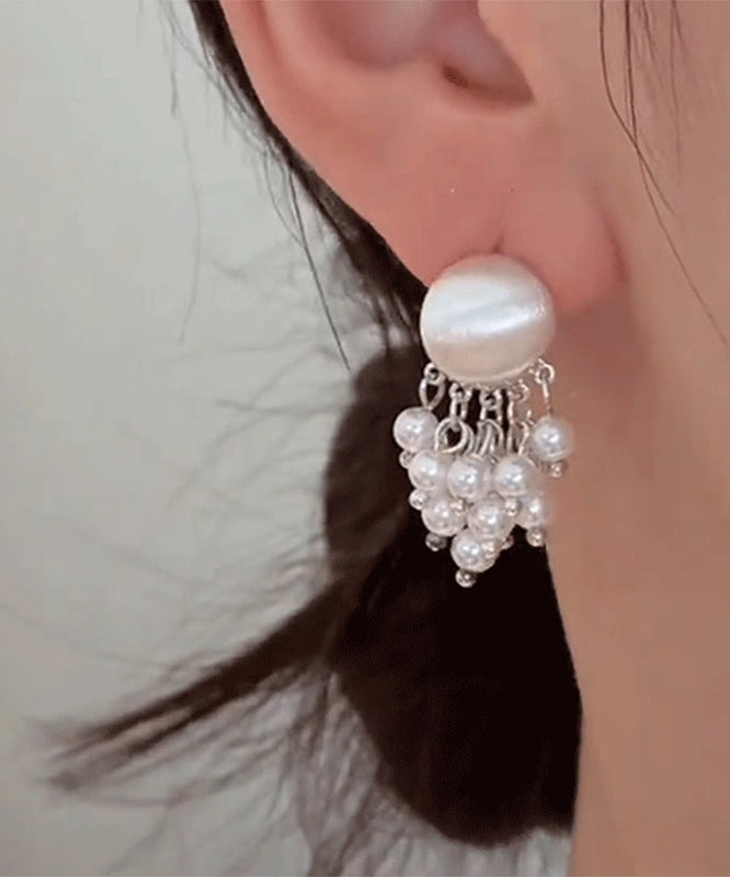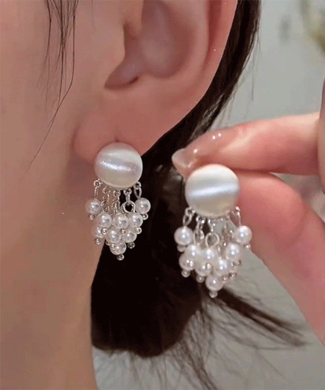 Elegant White Sterling Silver Pearl Drop Earrings