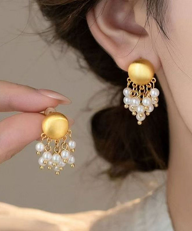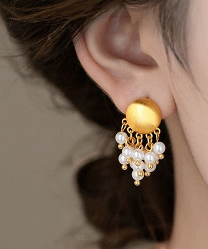 Vogue Gold Metal Pearl Tassel Drop Earrings