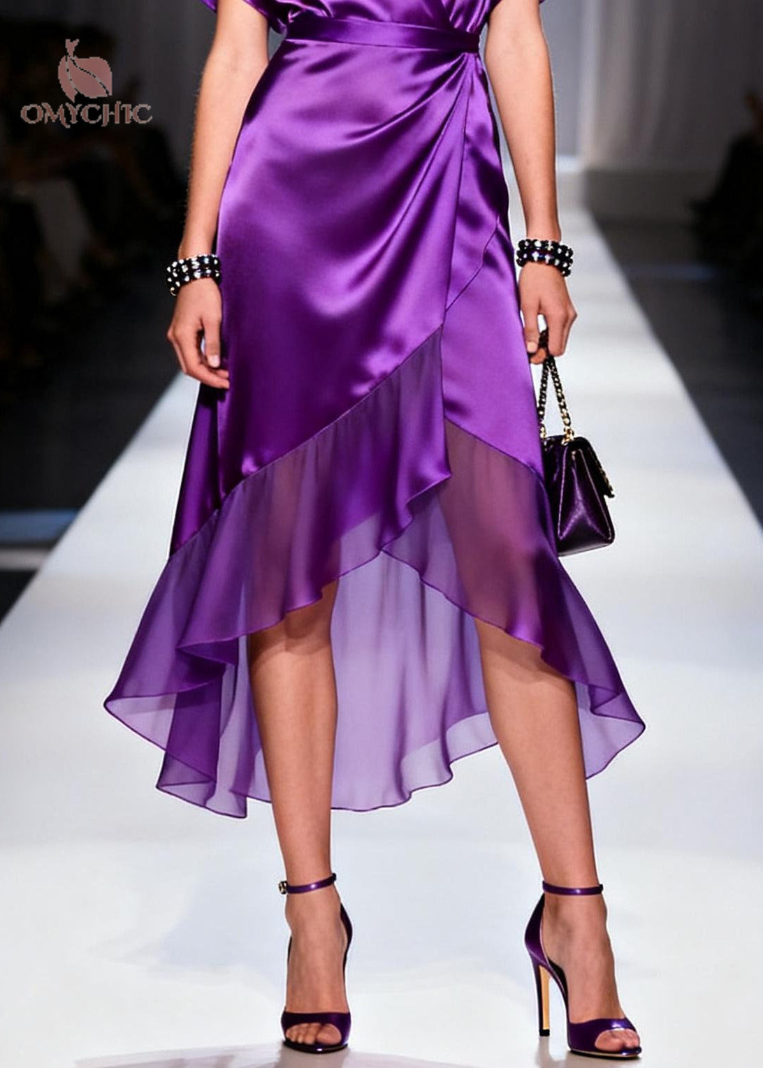 Women Purple Oversized Patchwork Tulle Long Dresses Summer