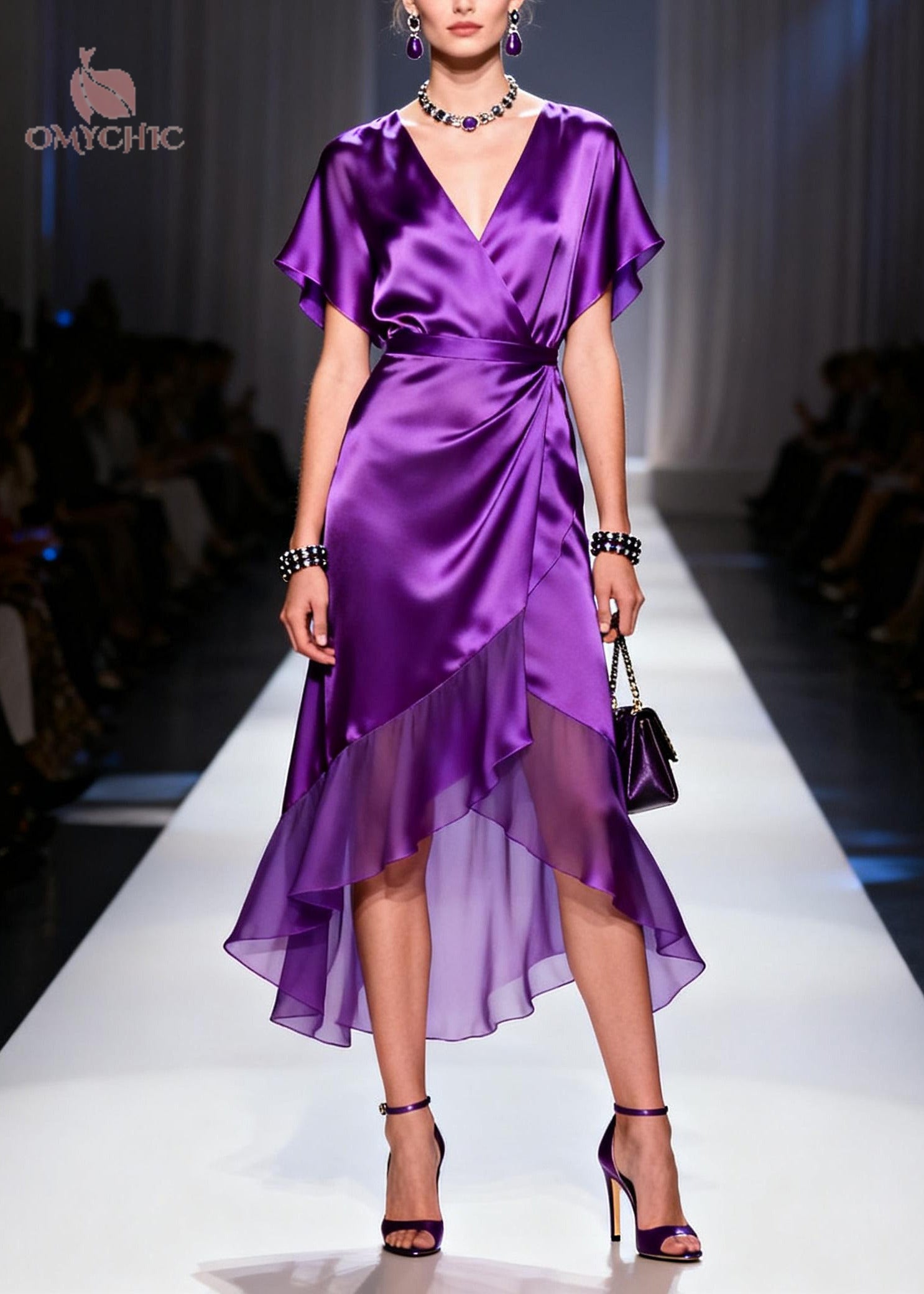 Vintage Purple V Neck Patchwork Chiffon Dresses Summer