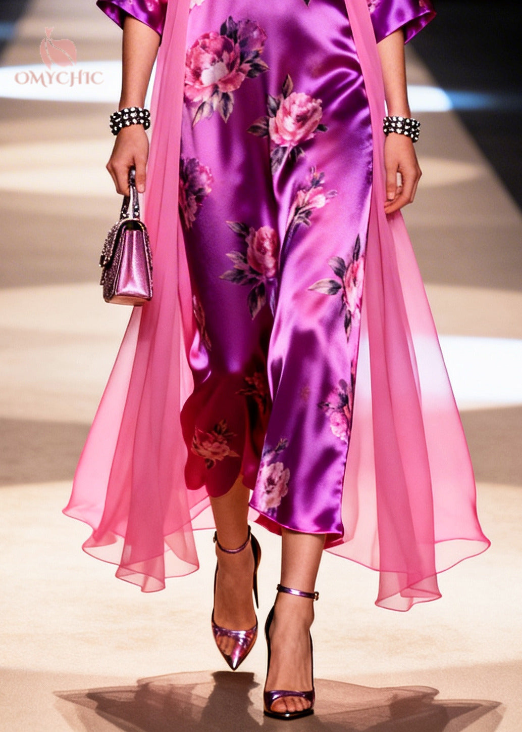Natural Purple Oversized Patchwork Chiffon Dresses Sleeveless