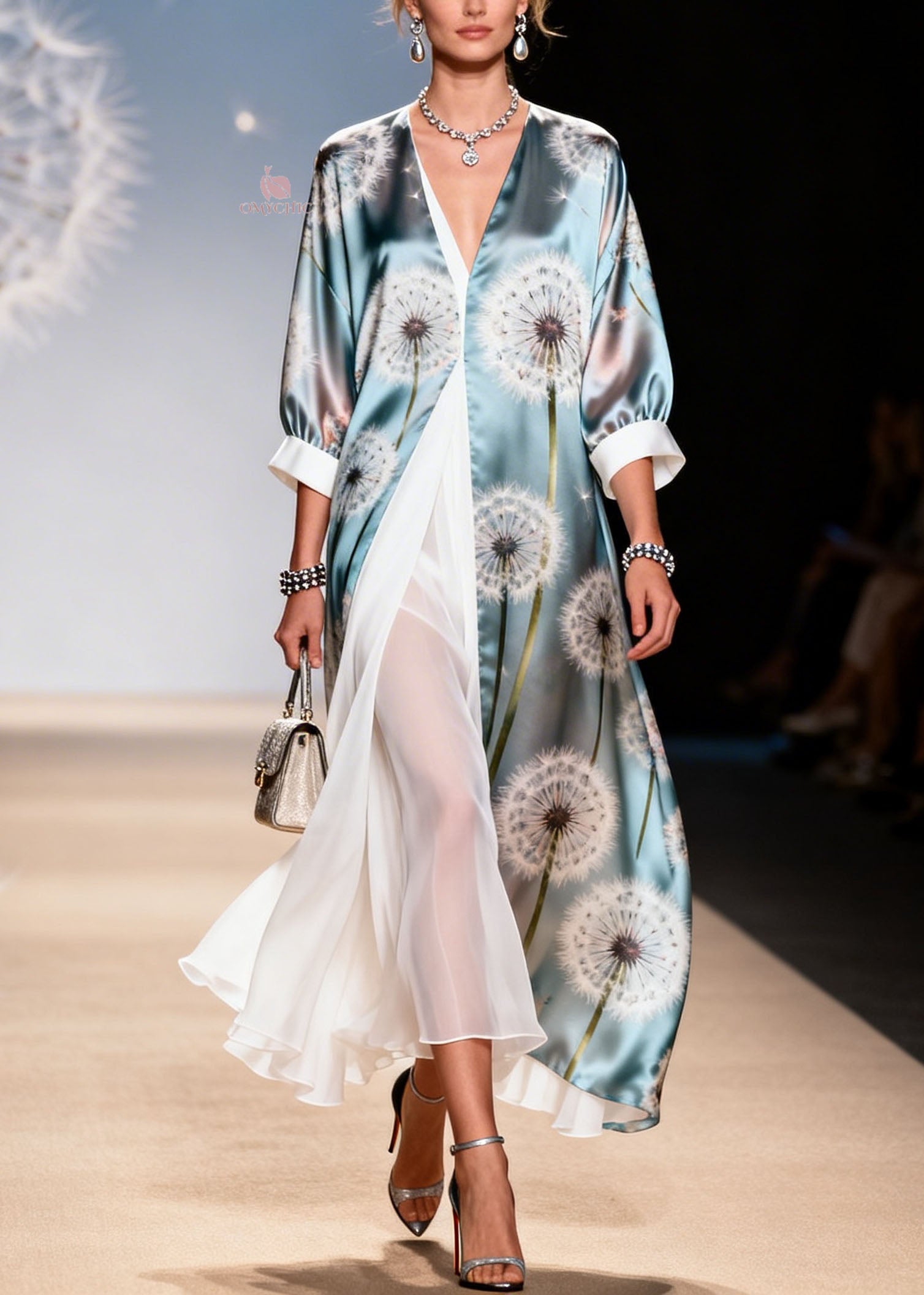Stylish V Neck Print Patchwork Silk Long Dress Summer