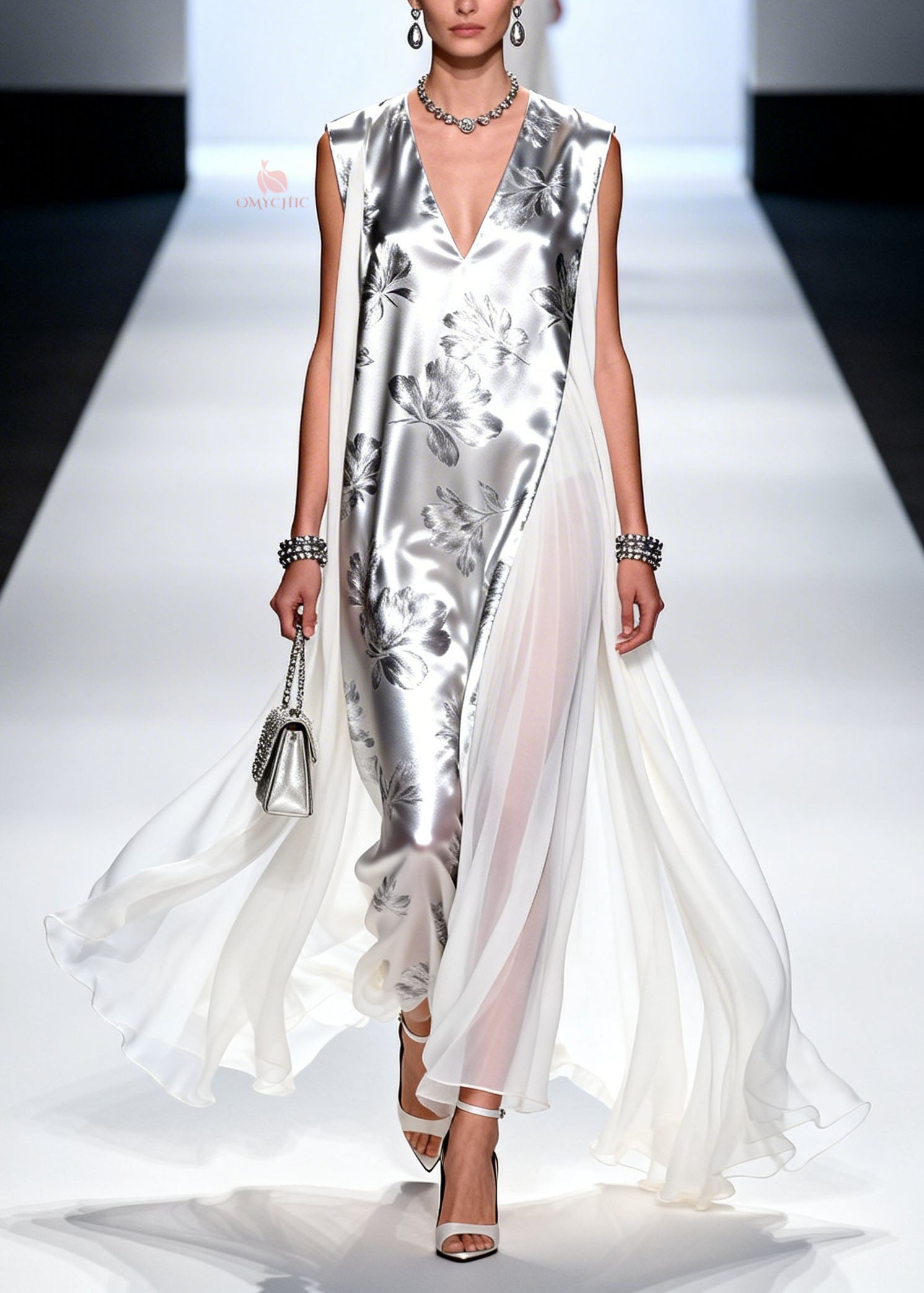 Unique V Neck Asymmetrical Patchwork Chiffon Dresses Summer
