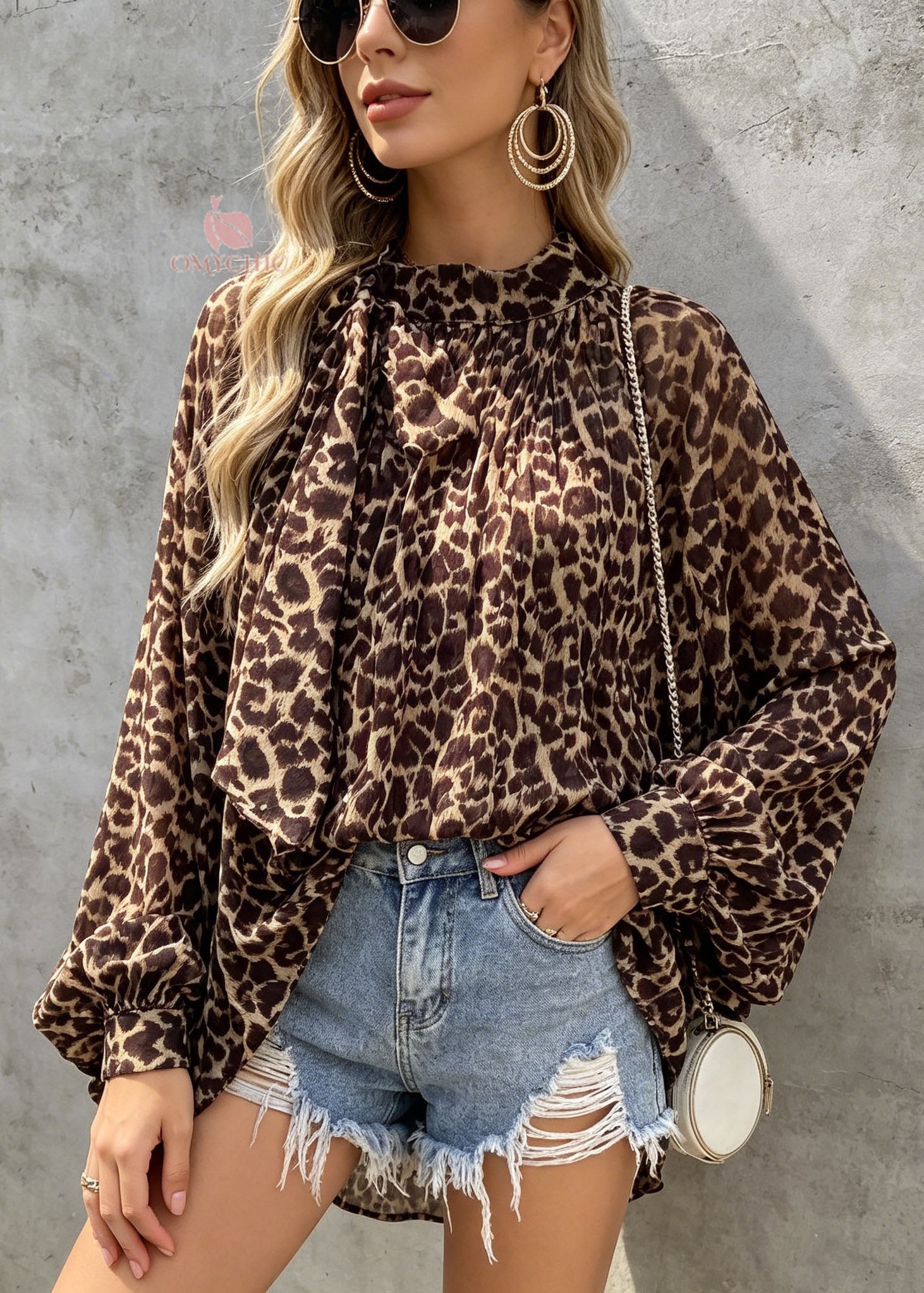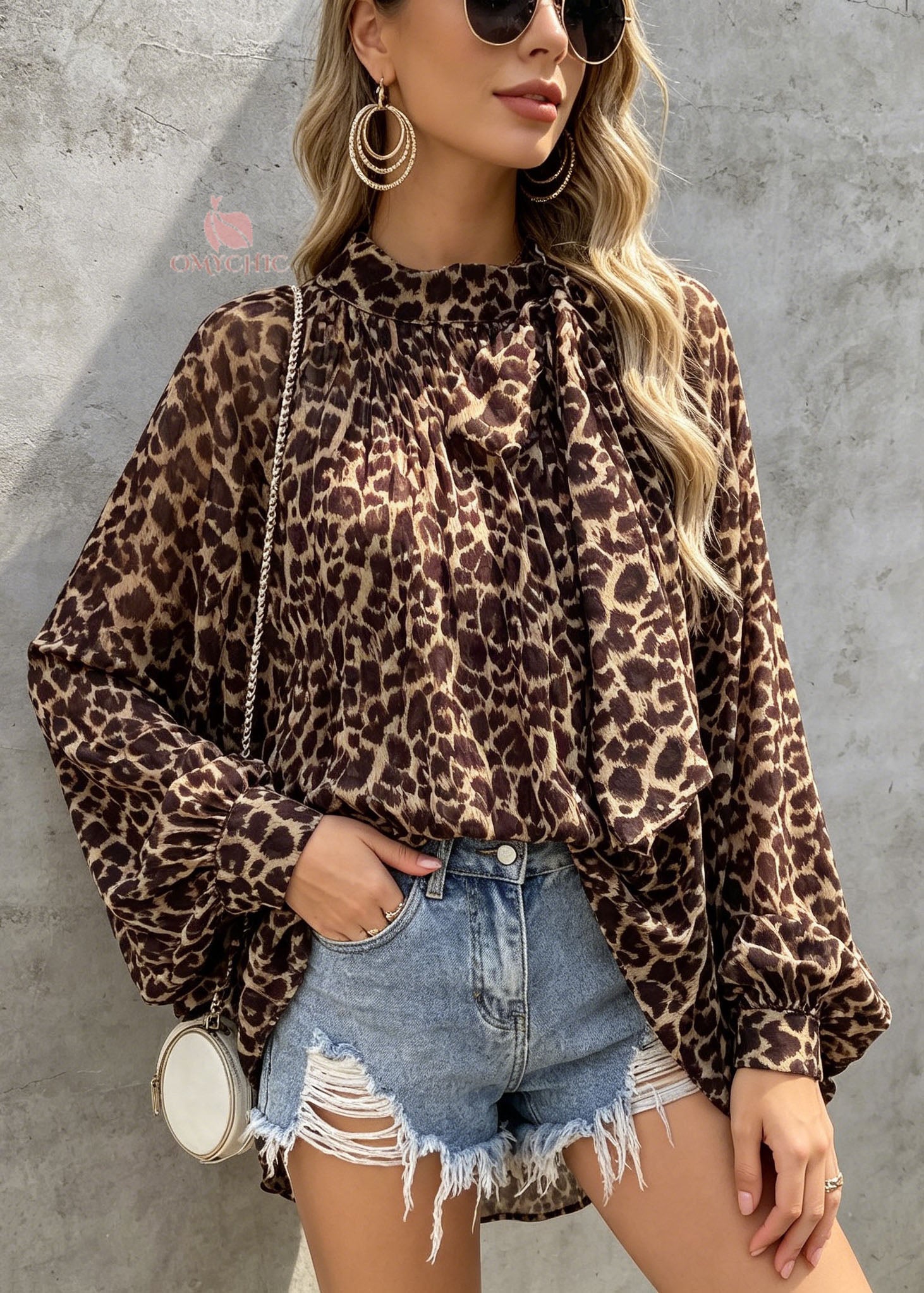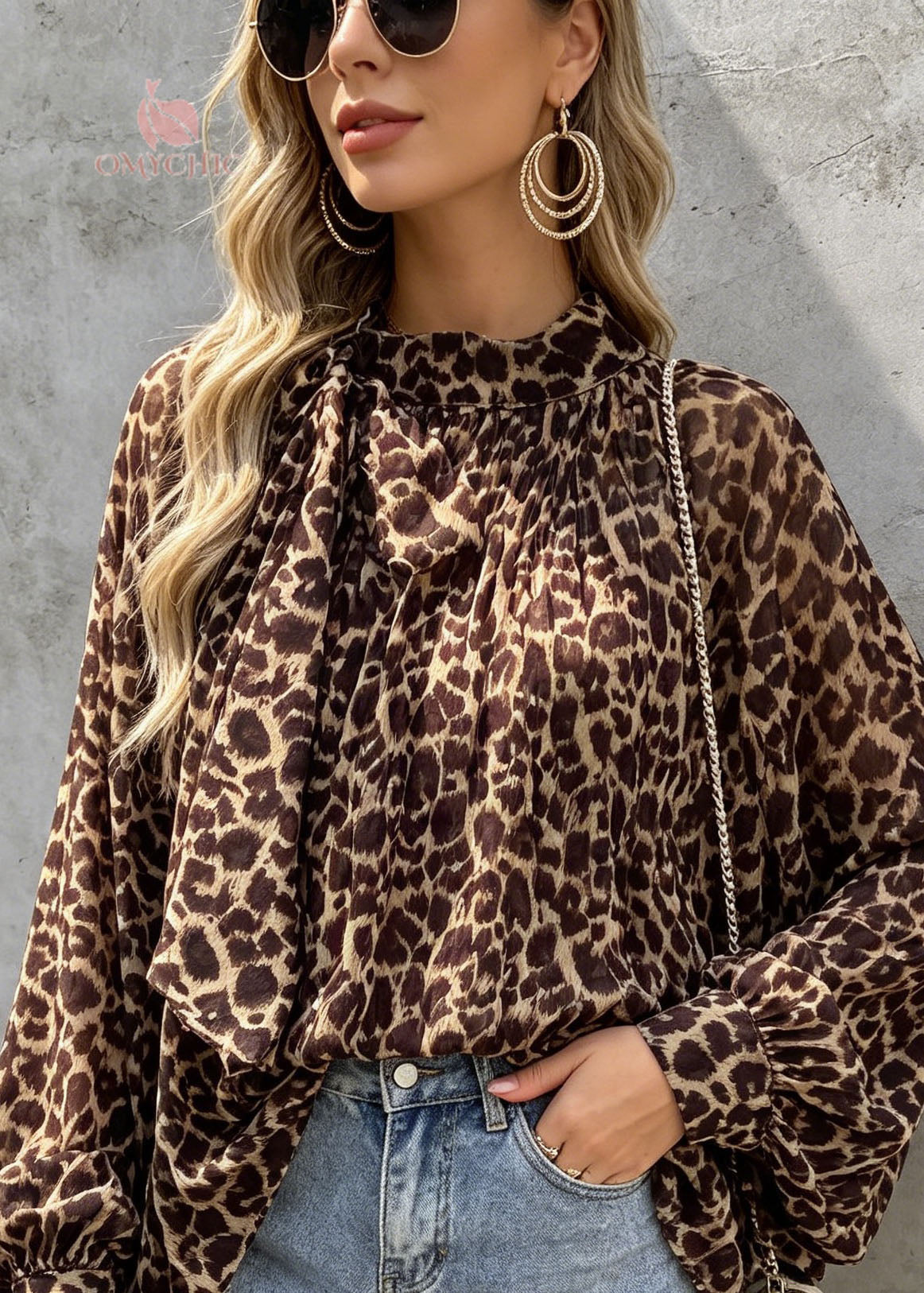 Bohemian Leopard Print Bow Chiffon Shirts Tops Spring