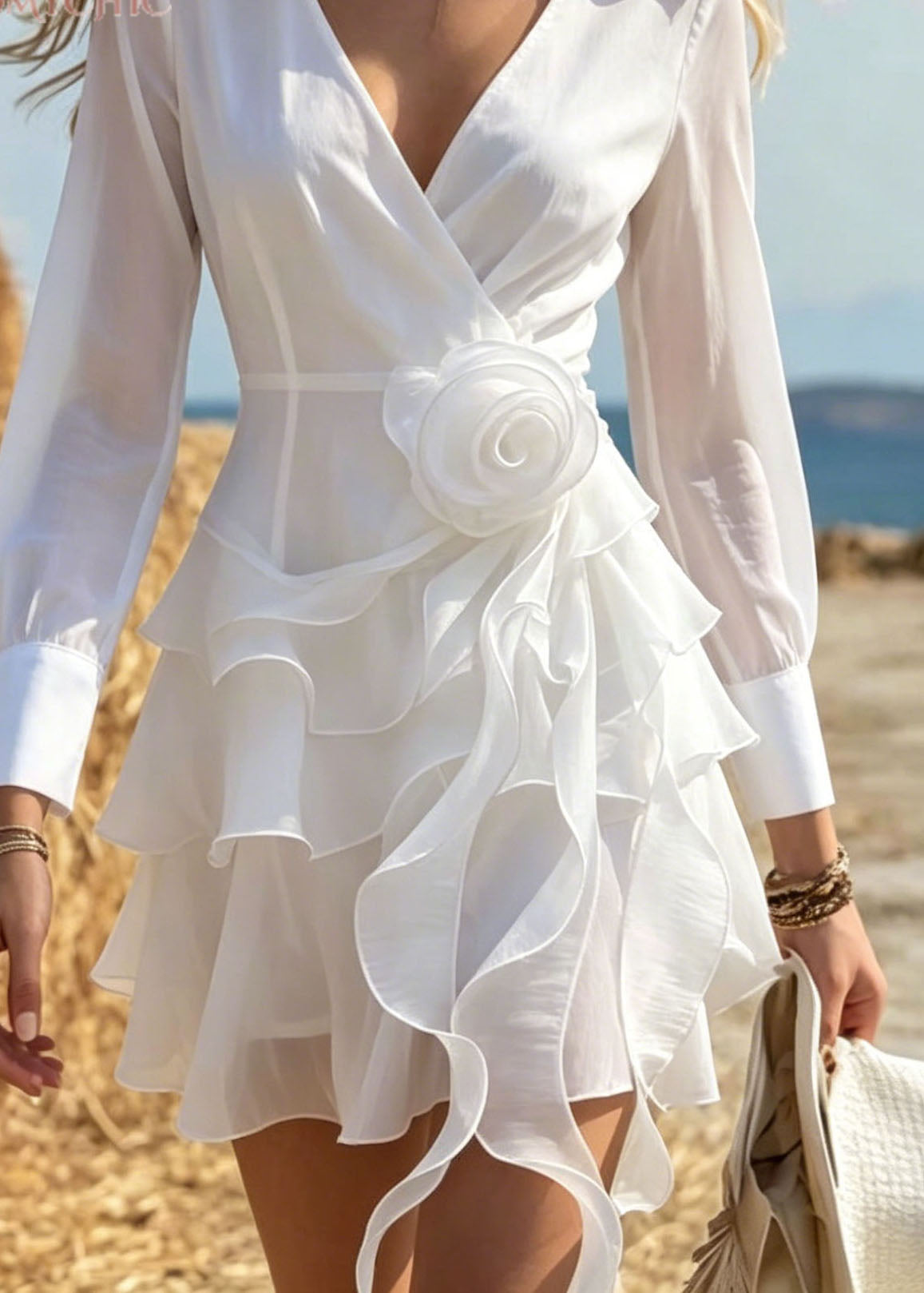 Fashion White Asymmetrical Design Floral Cotton Mini Dress Spring