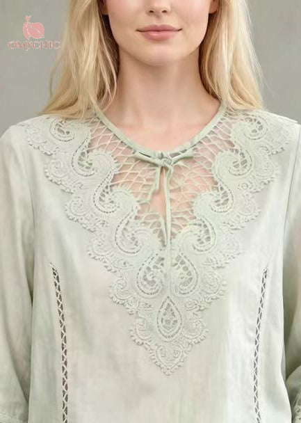 Fine Light Green Hollow Out Lace Patchwork Cotton Tanks Summer