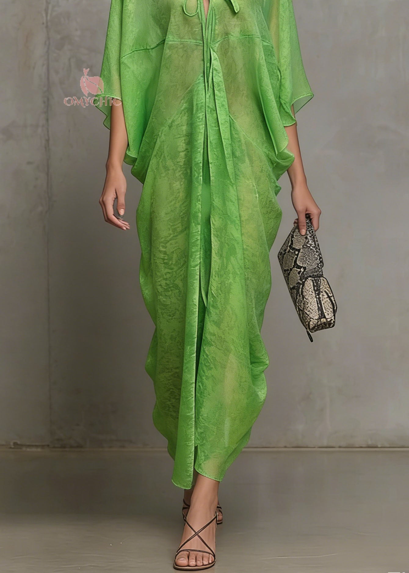 Modern Green V Neck Lace Patchwork Cotton Maxi Dresses Spring