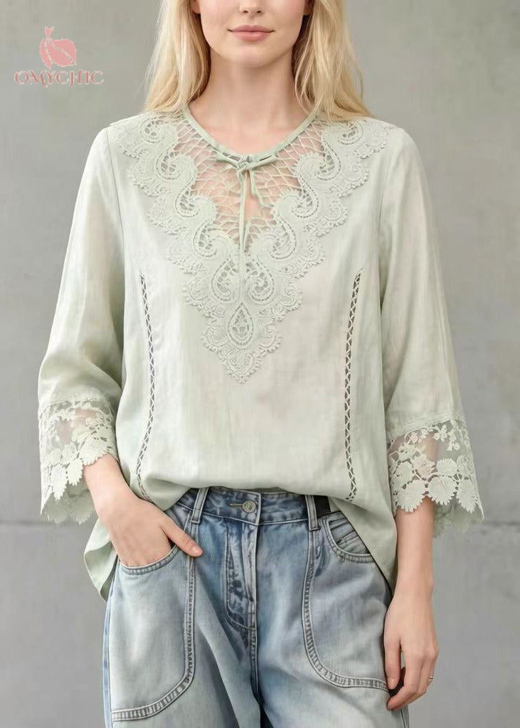 Fine Light Green Hollow Out Lace Patchwork Cotton Tanks Summer